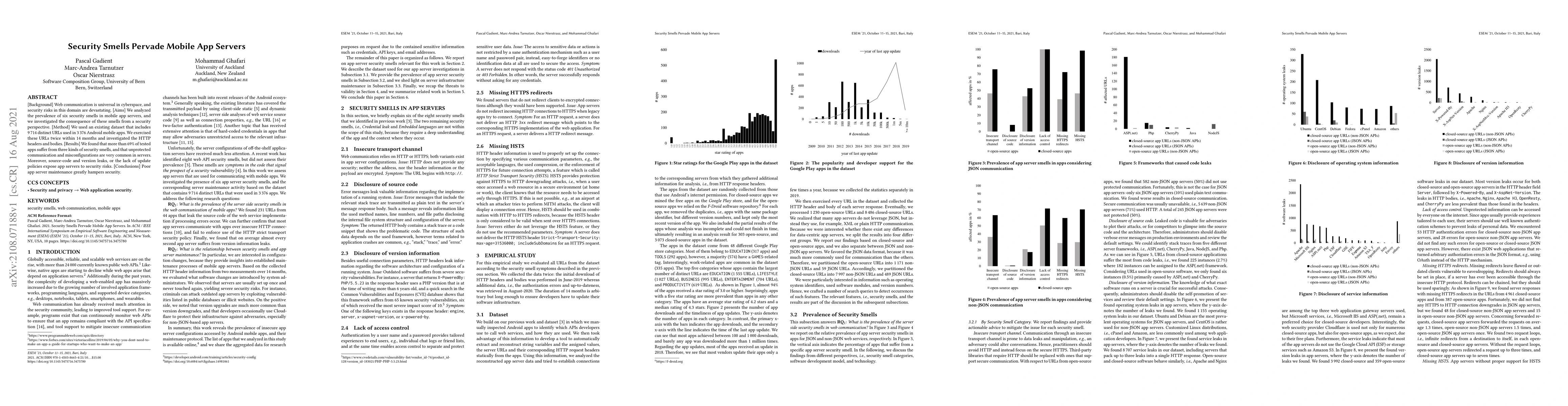 This study analyzes security risks in mobile app servers by identifying six prevalent security smells in a dataset of 3376 Android apps. The findings reveal that over 69% of the apps exhibit significant security vulnerabilities, including unprotected communication and misconfigurations, highlighting the critical need for improved app server maintenance.