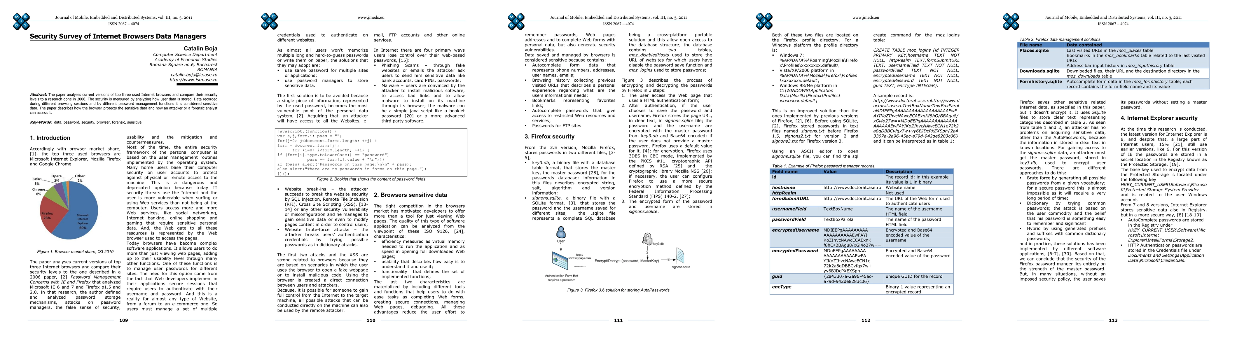 The paper analyses current versions of top three used Internet browsers and compare their security levels to a research done in 2006. The security is measured by analyzing how user data is stored. Data recorded during different browsing sessions and by different password management functions it is considered sensitive data. The paper describes how the browser protects the sensitive data and how an attacker or a forensic analyst can access it.