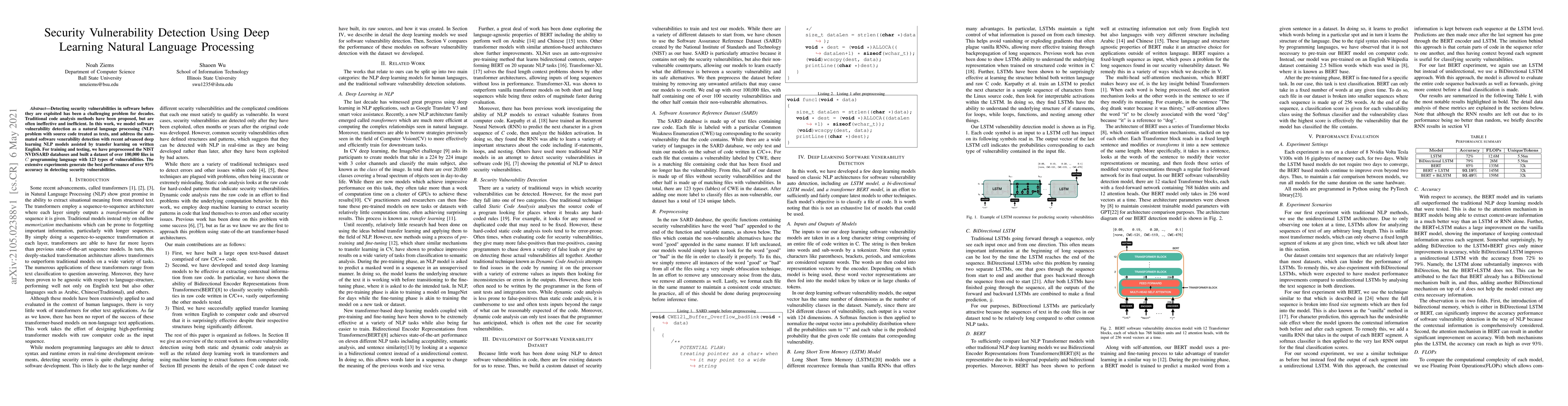 This paper proposes a deep learning approach using natural language processing to detect software vulnerabilities by treating source code as text. Utilizing advanced NLP models and transfer learning on English texts, the method achieves over 93% accuracy in vulnerability detection on a dataset derived from NIST NVD/SARD databases.