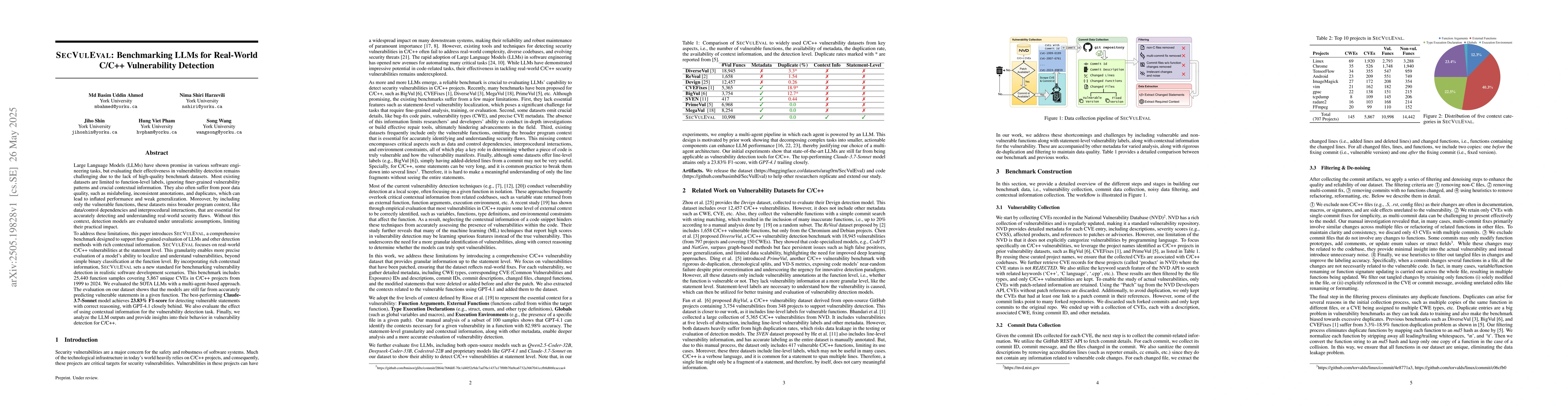 This paper introduces SecVulEval, a benchmark for evaluating Large Language Models in C/C++ vulnerability detection, revealing that even state-of-the-art models struggle to accurately predict vulnerable code statements.