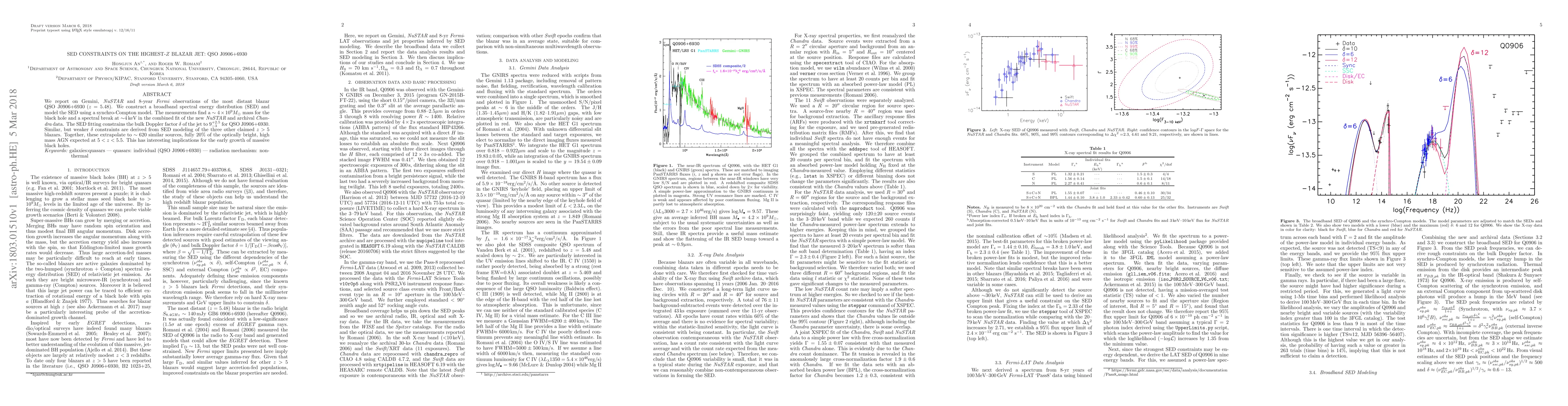 blazar QSO~J0906$+$6930 ($z=5.48$). We construct a broadband spectral energy