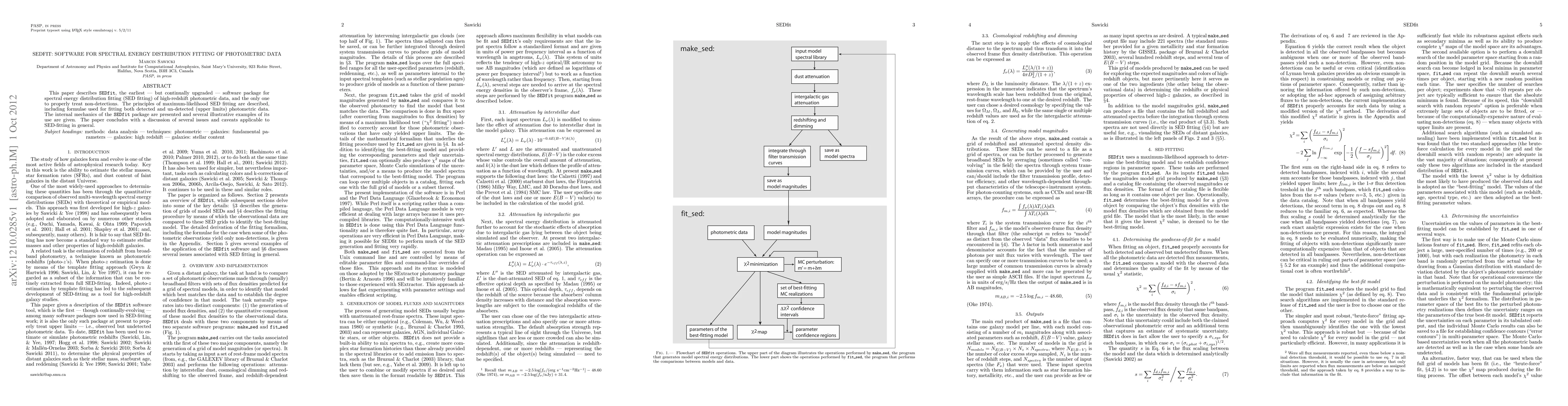 SEDfit is an advanced software package for fitting spectral energy distribution (SED) data, particularly for high-redshift photometric observations. It uniquely handles non-detections through maximum-likelihood methods, providing robust solutions for both detected and upper limit data.