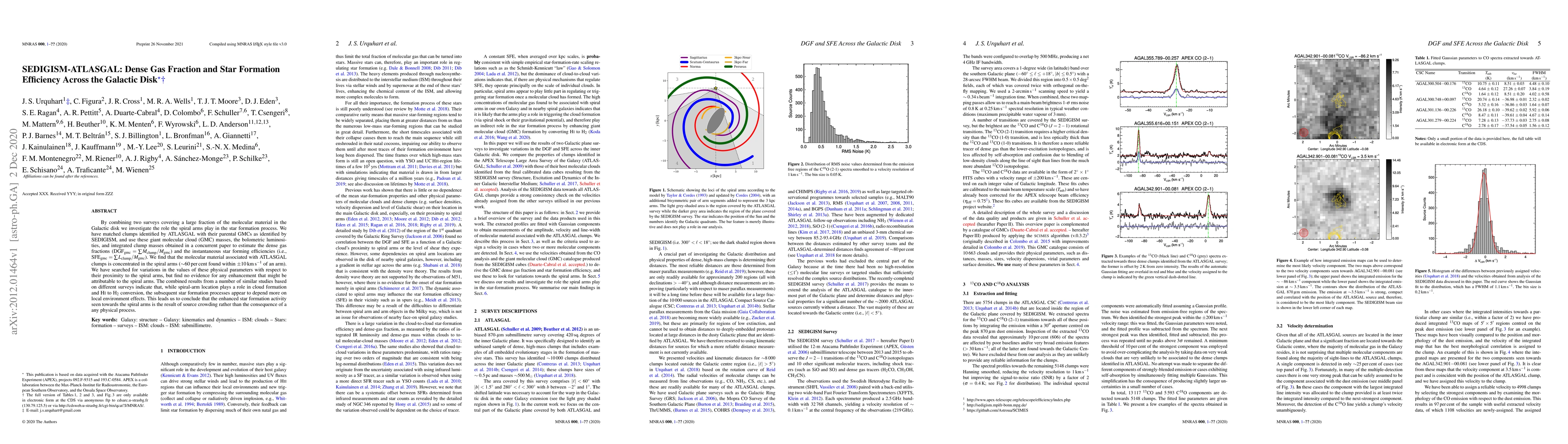 This study combines ATLASGAL and SEDIGISM surveys to analyze the dense gas fractions and star formation efficiencies across the Galactic disk, finding that spiral arms concentrate molecular material but do not enhance star formation efficiency. The results suggest that local environmental factors, rather than the spiral arms themselves, drive star formation.