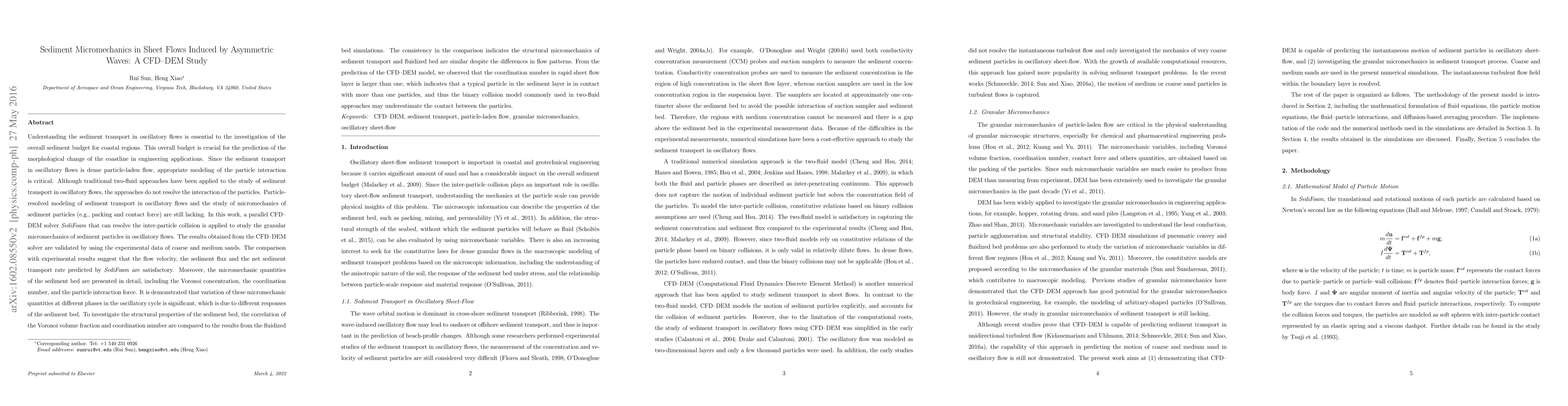 This study employs a parallel CFD-DEM solver to model the granular micromechanics of sediment particles in oscillatory flows, resolving inter-particle interactions. The results are validated against experimental data, showing satisfactory predictions of flow velocity, sediment flux, and transport rate, and reveal significant variations in micromechanic quantities like Voronoi concentration and coordination number during different phases of the oscillatory cycle.