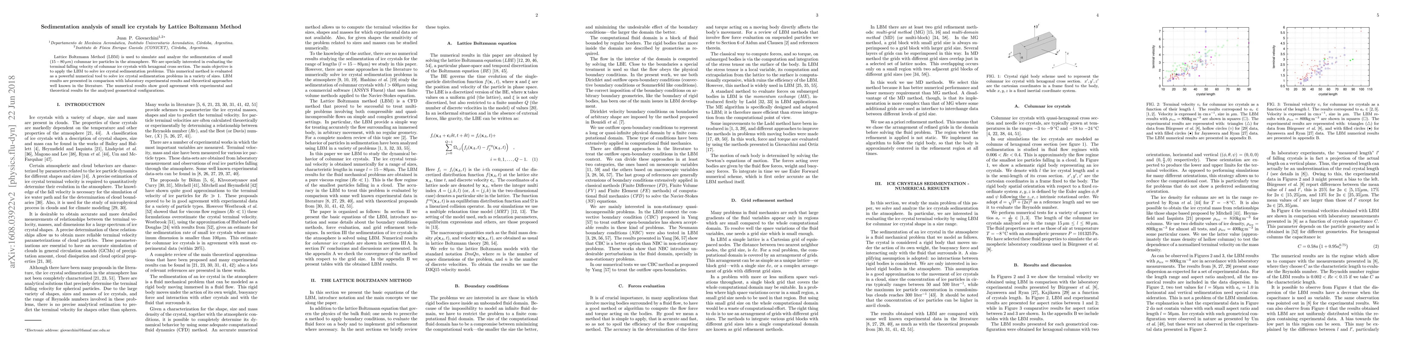 The paper uses the Lattice Boltzmann Method (LBM) to simulate and analyze the sedimentation of small ice crystals, focusing on their terminal falling velocity. The LBM is shown to be a powerful tool for solving ice crystal sedimentation problems, with results aligning well with experimental and theoretical data.