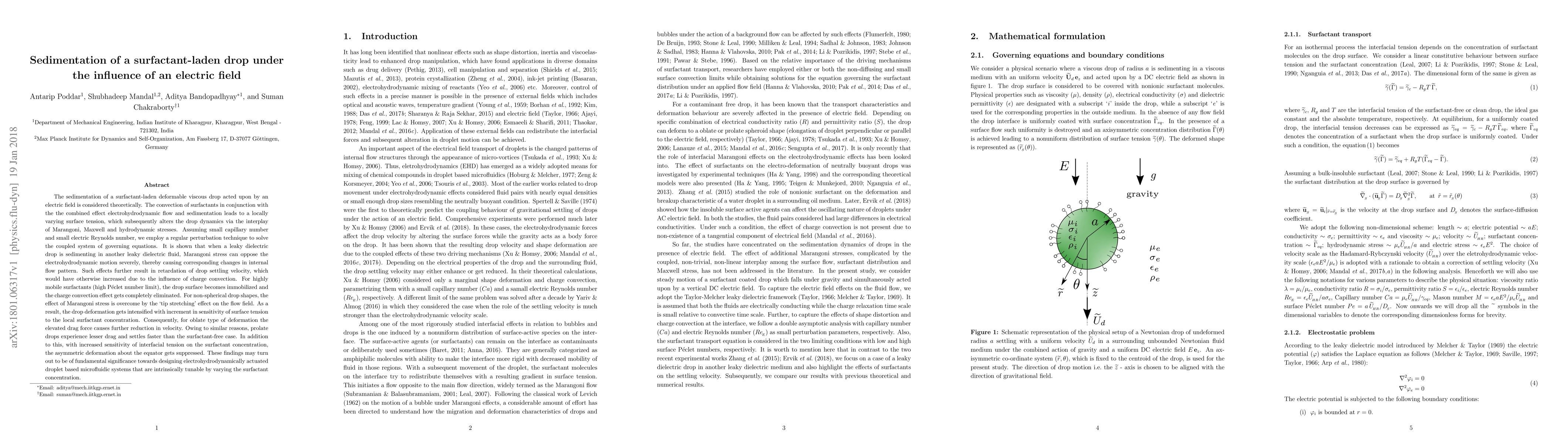 This paper investigates the sedimentation dynamics of a surfactant-laden viscous drop under an electric field, revealing that Marangoni stress can significantly oppose electrohydrodynamic motion, altering drop dynamics and settling velocity. The study shows that high surfactant mobility can immobilize the drop surface, while non-spherical deformations intensify due to 'tip stretching' effects, leading to varied settling velocities depending on the drop shape.