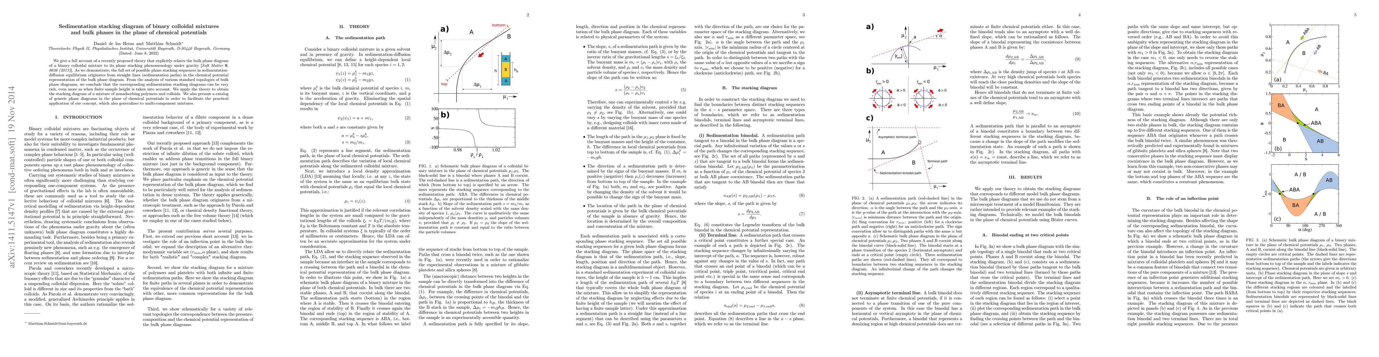 This paper presents a theory linking the bulk phase diagram of binary colloidal mixtures to their sedimentation stacking under gravity, showing that sedimentation paths in chemical potential space determine the full set of possible phase stacking sequences. The study applies this theory to mixtures of nonadsorbing polymers and colloids, providing a catalog of generic phase diagrams for practical application.