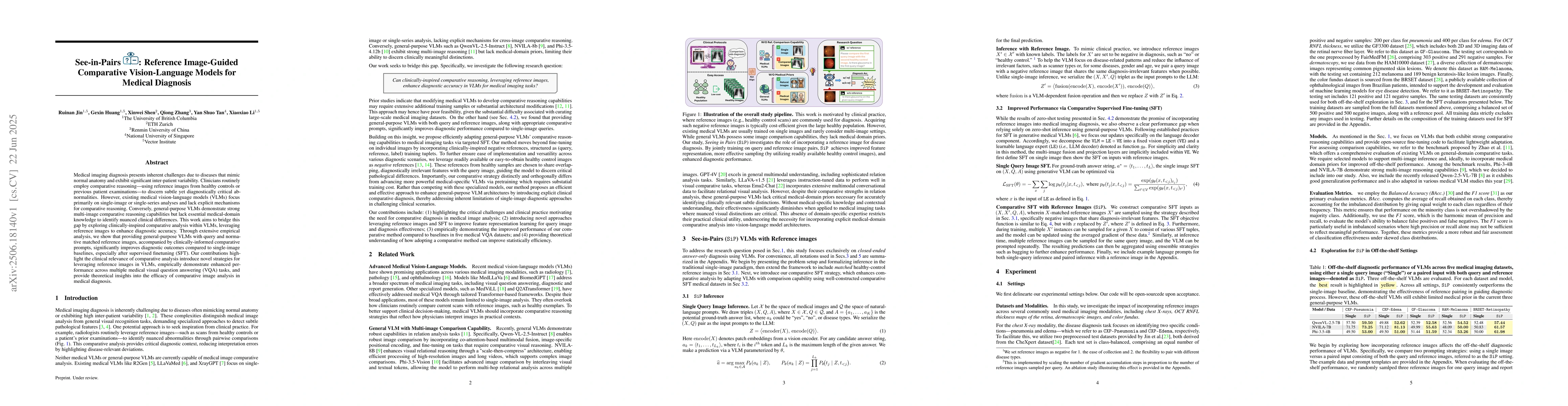 Medical imaging diagnosis presents inherent challenges due to diseases that mimic normal anatomy and exhibit significant inter-patient variability. Clinicians routinely employ comparative reasoning-using reference images from healthy controls or previous patient examinations-to discern subtle yet diagnostically critical abnormalities. However, existing medical vision-language models (VLMs) focus primarily on single-image or single-series analyses and lack explicit mechanisms for comparative reasoning. Conversely, general-purpose VLMs demonstrate strong multi-image comparative reasoning capabilities but lack essential medical-domain knowledge to identify nuanced clinical differences. This work aims to bridge this gap by exploring clinically-inspired comparative analysis within VLMs, leveraging reference images to enhance diagnostic accuracy. Through extensive empirical analysis, we show that providing general-purpose VLMs with query and normative matched reference images, accompanied by clinically-informed comparative prompts, significantly improves diagnostic outcomes compared to single-image baselines, especially after supervised finetuning (SFT). Our contributions highlight the clinical relevance of comparative analysis introduce novel strategies for leveraging reference images in VLMs, empirically demonstrate enhanced performance across multiple medical visual question answering (VQA) tasks, and provide theoretical insights into the efficacy of comparative image analysis in medical diagnosis.