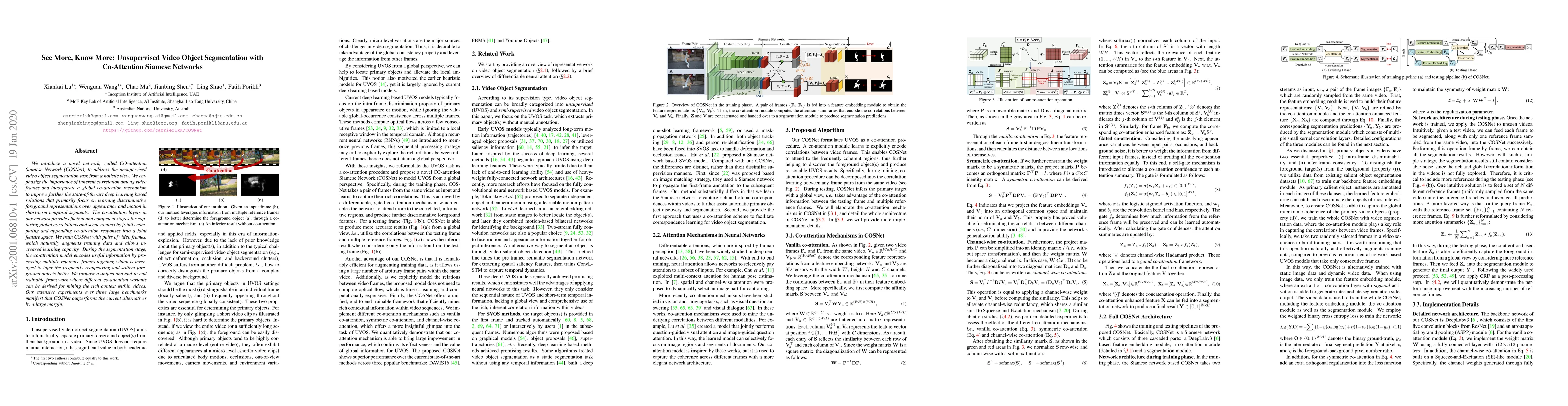 This paper introduces COSNet, a co-attention Siamese network for unsupervised video object segmentation, leveraging global frame correlations and co-attention mechanisms to outperform current state-of-the-art methods. Experiments on three benchmarks show significant improvements.