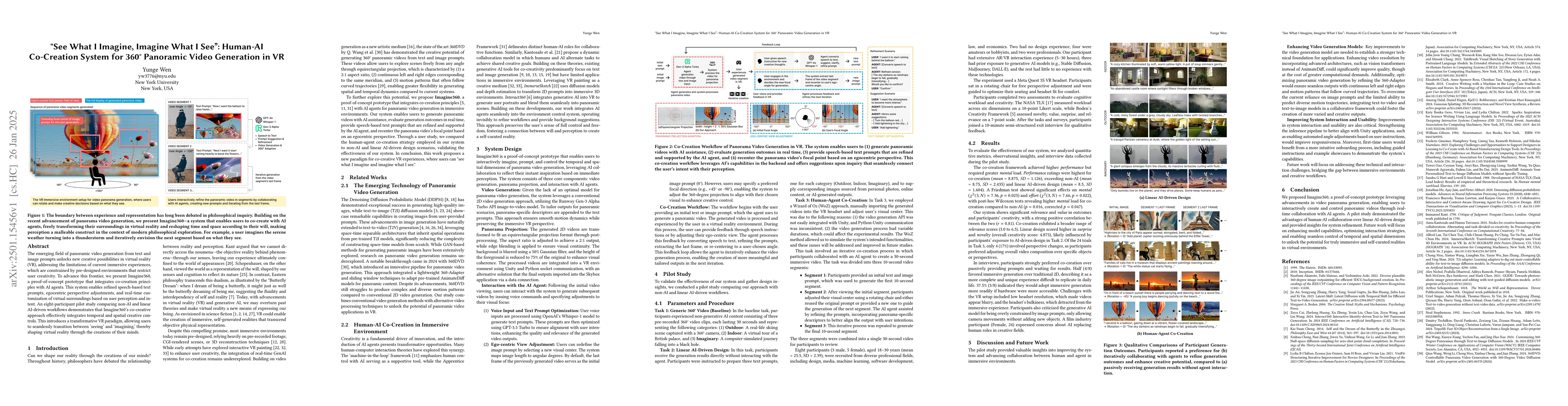This paper introduces Imagine360, a human-AI co-creation system for generating 360° panoramic videos in VR from text and image prompts. The pilot study shows that Imagine360's co-creative approach enhances immersive experiences by allowing users to dynamically shape their virtual environments, bridging the gap between perception and imagination.