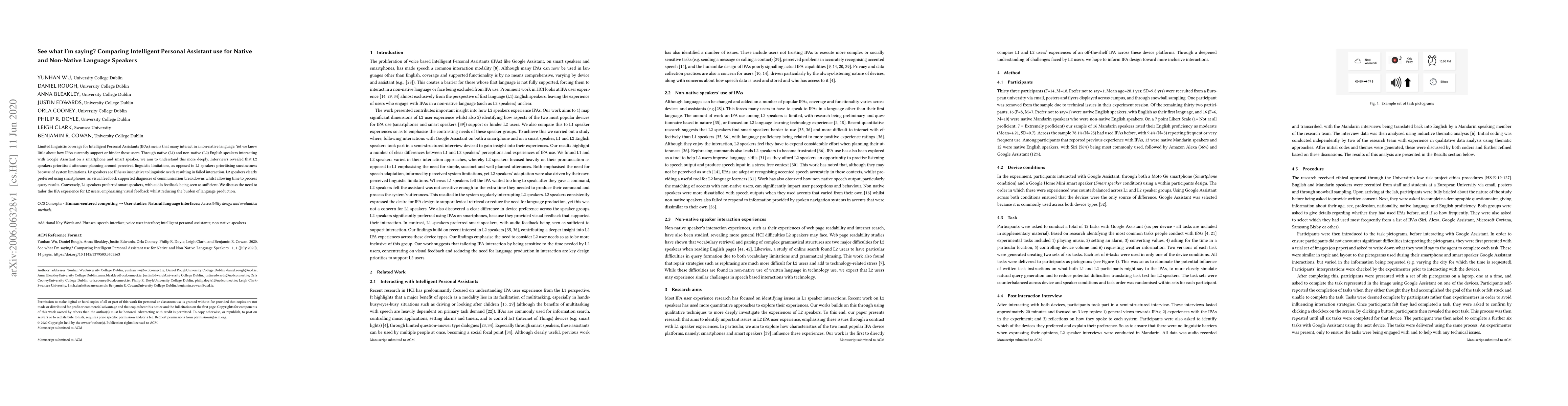 This study compares how native and non-native English speakers interact with Google Assistant, revealing that non-native speakers plan their utterances around perceived linguistic limitations, while native speakers prioritize succinctness. Non-native speakers prefer smartphones for visual feedback, whereas native speakers favor smart speakers for audio feedback.