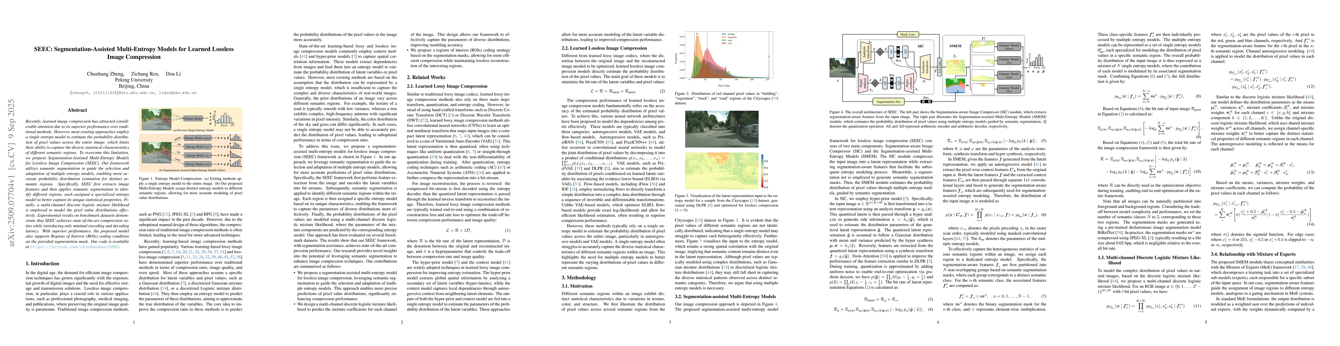 Recently, learned image compression has attracted considerable attention due to its superior performance over traditional methods. However, most existing approaches employ a single entropy model to estimate the probability distribution of pixel values across the entire image, which limits their ability to capture the diverse statistical characteristics of different semantic regions. To overcome this limitation, we propose Segmentation-Assisted Multi-Entropy Models for Lossless Image Compression (SEEC). Our framework utilizes semantic segmentation to guide the selection and adaptation of multiple entropy models, enabling more accurate probability distribution estimation for distinct semantic regions. Specifically, SEEC first extracts image features and then applies semantic segmentation to identify different regions, each assigned a specialized entropy model to better capture its unique statistical properties. Finally, a multi-channel discrete logistic mixture likelihood is employed to model the pixel value distributions effectively. Experimental results on benchmark datasets demonstrate that SEEC achieves state-of-the-art compression ratios while introducing only minimal encoding and decoding latency. With superior performance, the proposed model also supports Regions of Interest (ROIs) coding condition on the provided segmentation mask. Our code is available at https://github.com/chunbaobao/SEEC.
