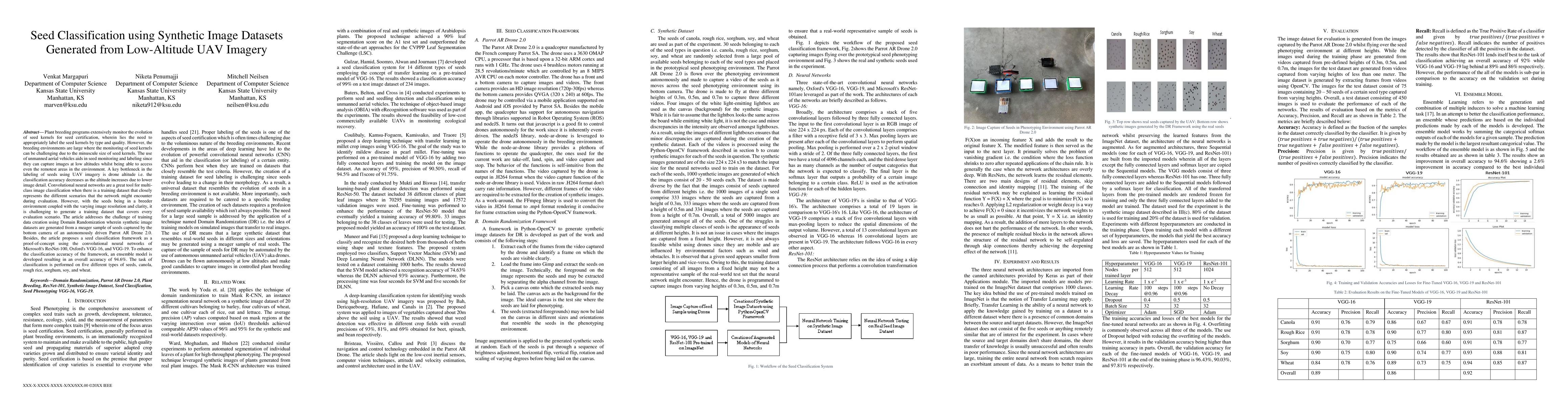 This research introduces a method to classify seeds using synthetic image datasets generated from low-altitude UAV imagery, addressing the challenge of limited training data. By employing Domain Randomization and using ResNet-100, VGG-16, and VGG-19, an ensemble model was developed, achieving 94.6% classification accuracy, which can benefit plant breeding programs for efficient seed monitoring and labeling.