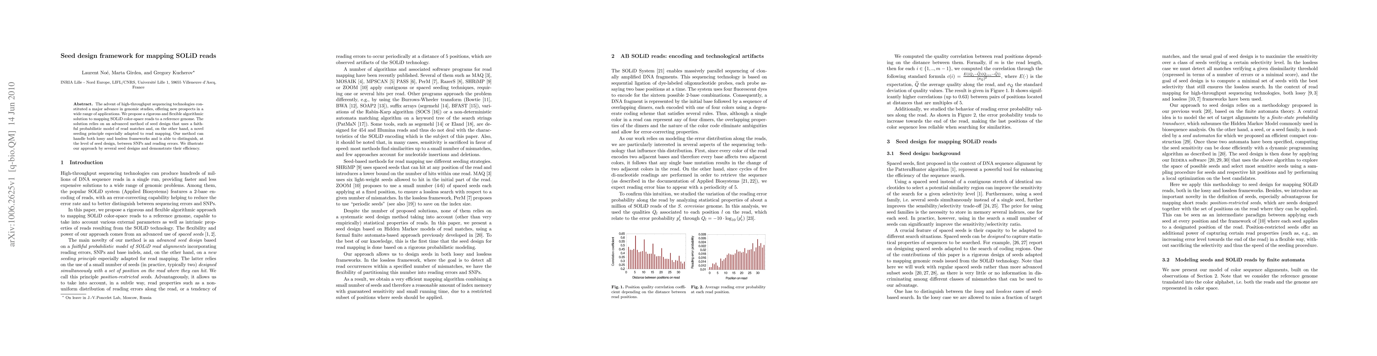 A new algorithmic solution is proposed for mapping SOLiD color-space reads to a reference genome using an advanced seed design method that can handle both lossy and lossless frameworks and distinguish between SNPs and reading errors.