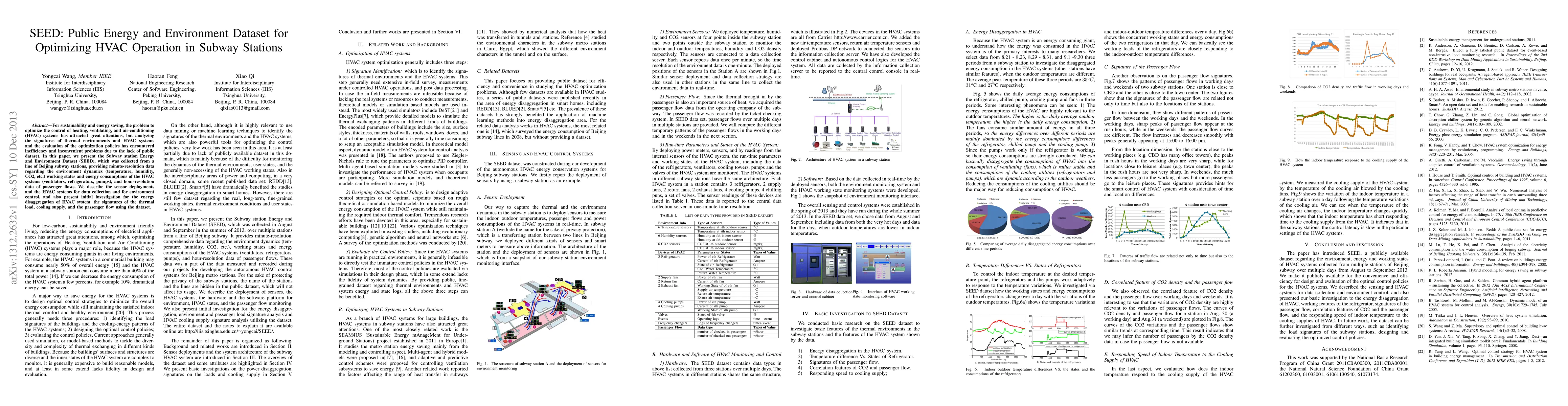 The researchers present the Subway station Energy and Environment Dataset (SEED), providing minute-resolution data on thermal environments and HVAC systems to optimize energy consumption in subway stations. The dataset offers insights into energy disaggregation, thermal load signatures, and passenger flow patterns, contributing to sustainable and efficient heating, ventilating, and air-conditioning system operation.