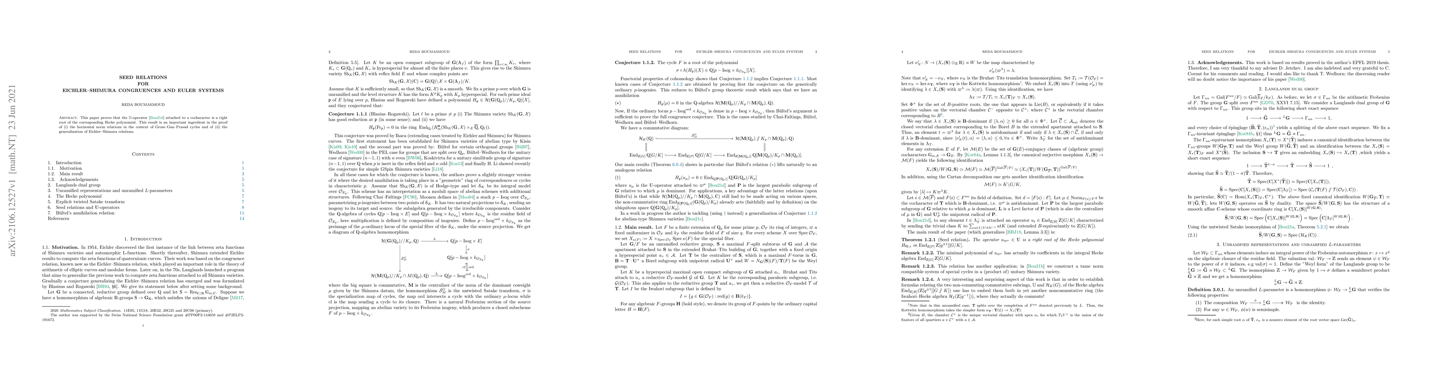 This paper establishes that the $\mathbb{U}$-operator linked to a cocharacter is a right root of the associated Hecke polynomial, contributing to the proof of horizontal norm relations in Gross-Gan-Prasad cycles and the generalization of Eichler-Shimura relations.