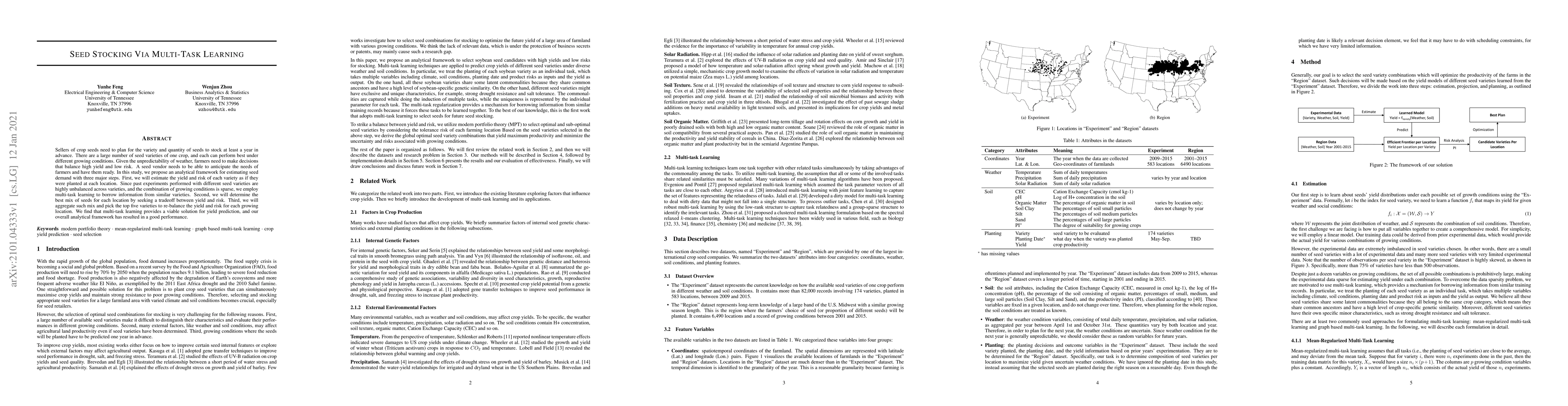 Sellers of crop seeds need to plan for the variety and quantity of seeds to stock at least a year in advance. There are a large number of seed varieties of one crop, and each can perform best under different growing conditions. Given the unpredictability of weather, farmers need to make decisions that balance high yield and low risk. A seed vendor needs to be able to anticipate the needs of farmers and have them ready. In this study, we propose an analytical framework for estimating seed demand with three major steps. First, we will estimate the yield and risk of each variety as if they were planted at each location. Since past experiments performed with different seed varieties are highly unbalanced across varieties, and the combination of growing conditions is sparse, we employ multi-task learning to borrow information from similar varieties. Second, we will determine the best mix of seeds for each location by seeking a tradeoff between yield and risk. Third, we will aggregate such mix and pick the top five varieties to re-balance the yield and risk for each growing location. We find that multi-task learning provides a viable solution for yield prediction, and our overall analytical framework has resulted in a good performance.