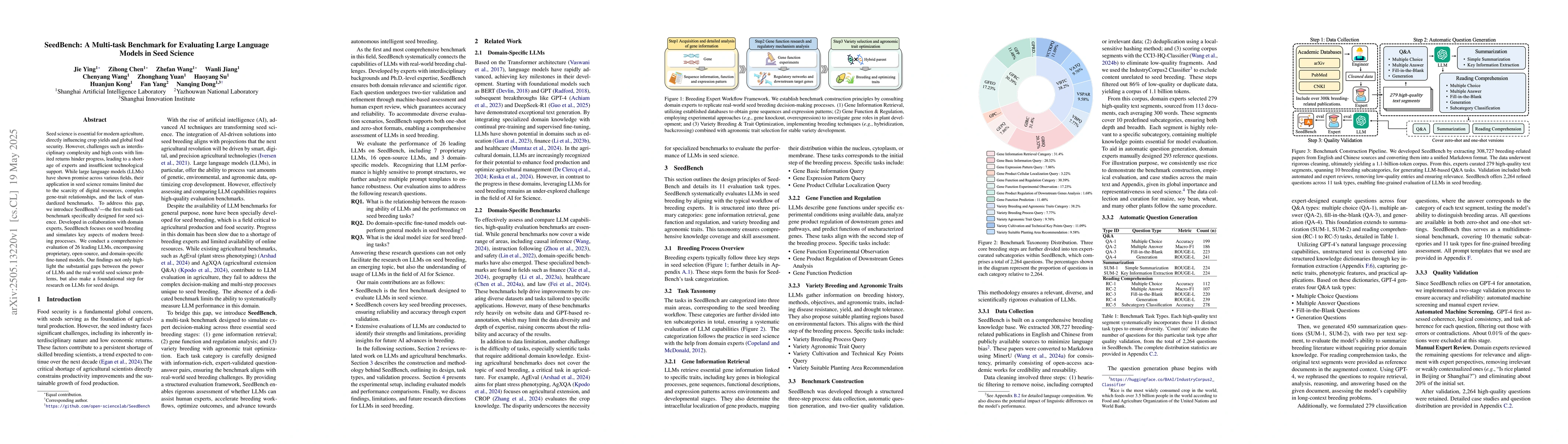 This work introduces a novel benchmark tailored to seed science, addressing the lack of standardized evaluation tools for LLMs in this critical agricultural field.
