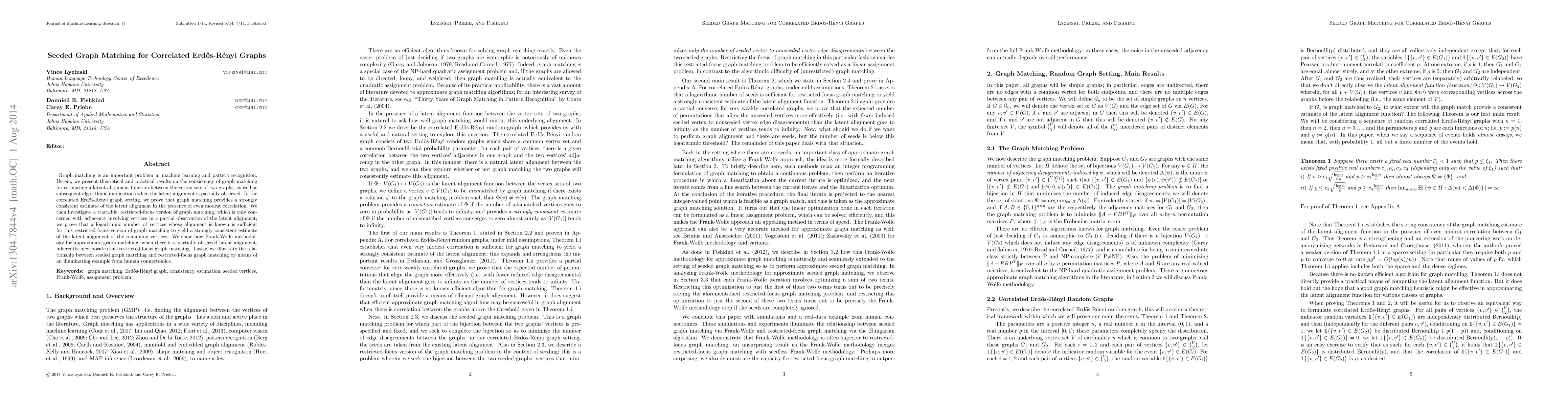 This paper explores the consistency of graph matching for estimating latent alignments in correlated Erdős-Rényi graphs, proving strong consistency under modest correlation. It introduces a restricted-focus version of graph matching that requires only a logarithmic number of known vertices for consistent estimation, and demonstrates its application using Frank-Wolfe methodology.