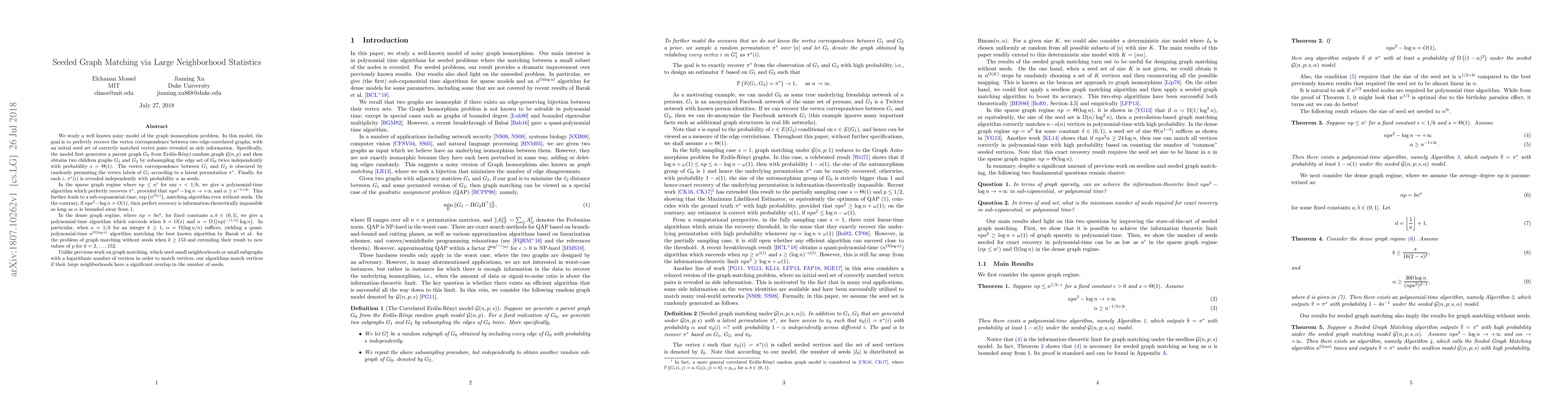 Researchers developed a new method for matching graphs with seed information, achieving faster and more accurate results than previous methods. This breakthrough improves the graph sparsity limit in polynomial time and sheds light on unseeded problems.