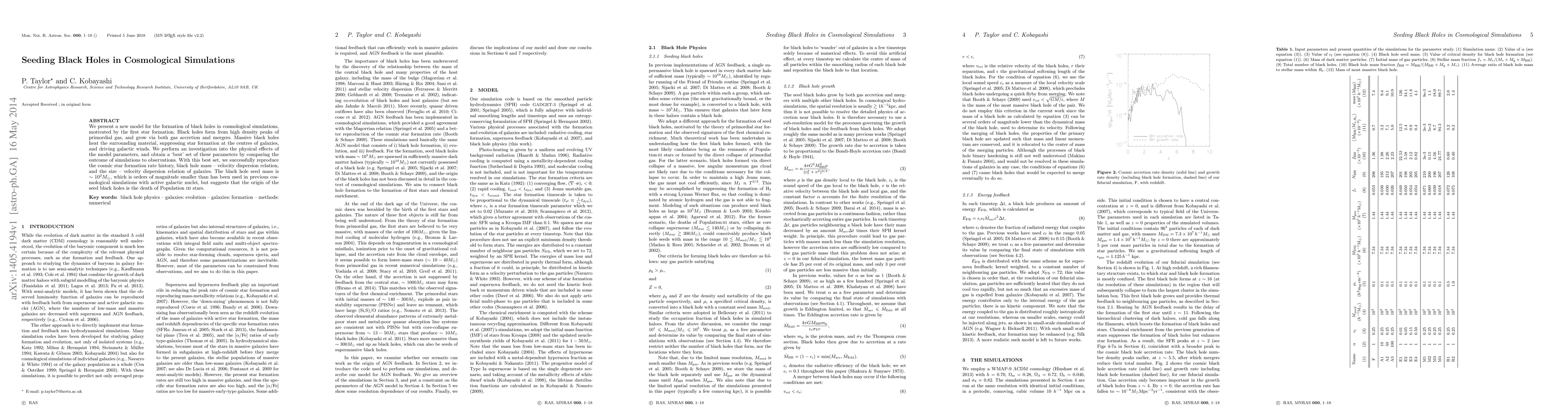 This paper introduces a new model for black hole formation in cosmological simulations, emphasizing the role of primordial gas density peaks and growth through accretion and mergers. The model successfully reproduces key observational data, suggesting that black hole seeds originate from the death of Population III stars.