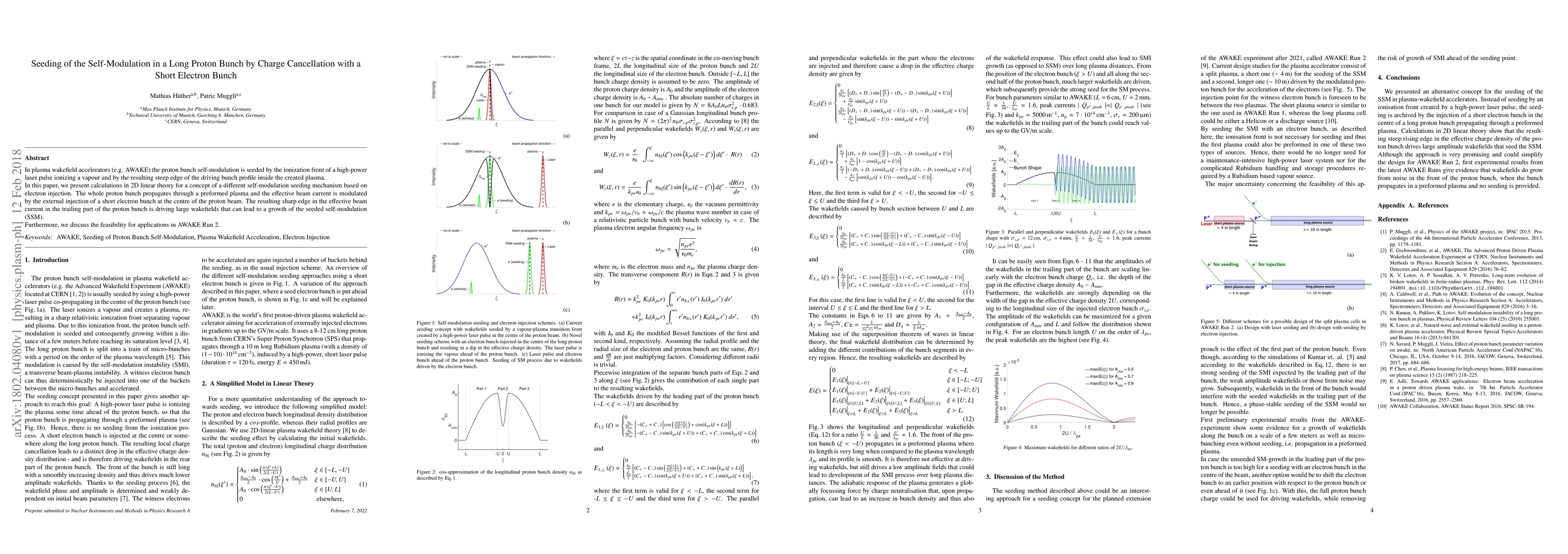 The seeding method is archived by injecting a short electron bunch into the center of a long proton bunch propagating through a preformed plasma.