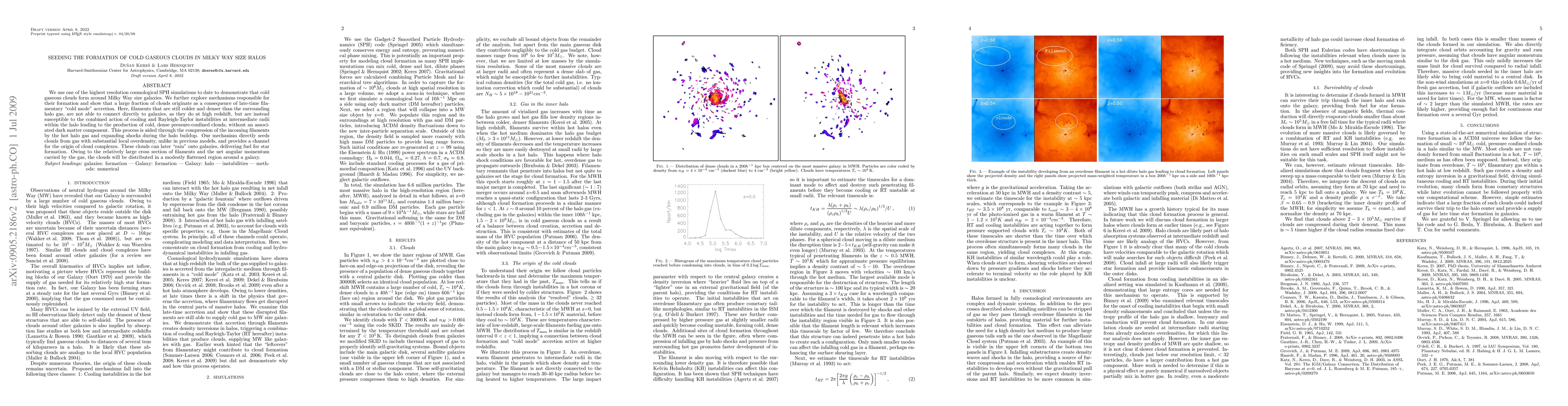 This research demonstrates that cold gaseous clouds form around Milky Way-sized galaxies primarily through late-time filamentary "cold mode" accretion, driven by cooling and Rayleigh-Taylor instabilities within the galaxy's halo. These clouds originate from substantial local overdensity gas, facilitating star formation fuel delivery.