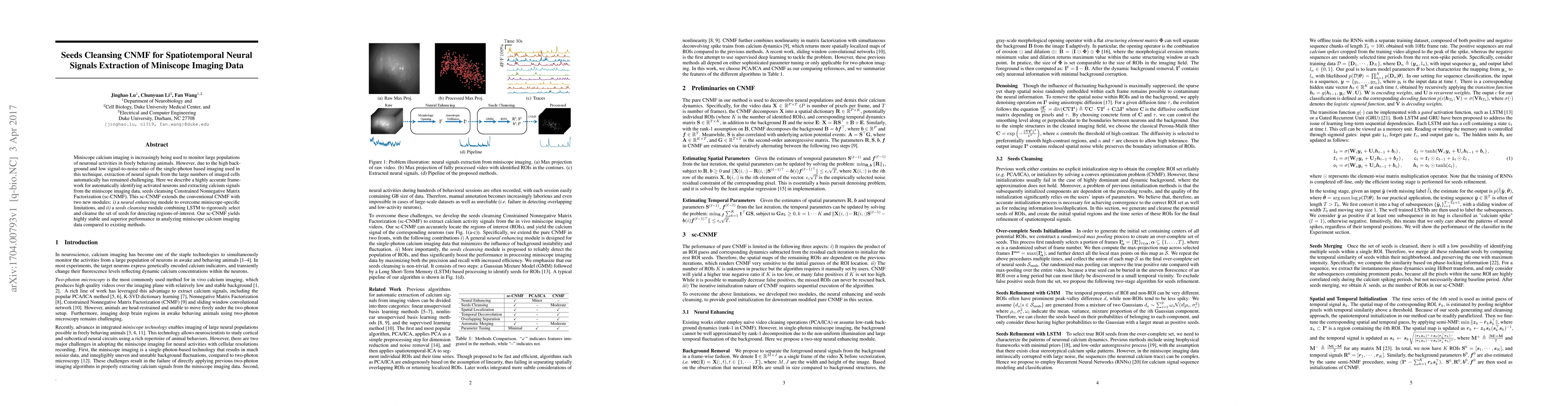 Miniscope calcium imaging is increasingly being used to monitor large populations of neuronal activities in freely behaving animals. However, due to the high background and low signal-to-noise ratio of the single-photon based imaging used in this technique, extraction of neural signals from the large numbers of imaged cells automatically has remained challenging. Here we describe a highly accurate framework for automatically identifying activated neurons and extracting calcium signals from the miniscope imaging data, seeds cleansing Constrained Nonnegative Matrix Factorization (sc-CNMF). This sc-CNMF extends the conventional CNMF with two new modules: i) a neural enhancing module to overcome miniscope-specific limitations, and ii) a seeds cleansing module combining LSTM to rigorously select and cleanse the set of seeds for detecting regions-of-interest. Our sc-CNMF yields highly stable and superior performance in analyzing miniscope calcium imaging data compared to existing methods.