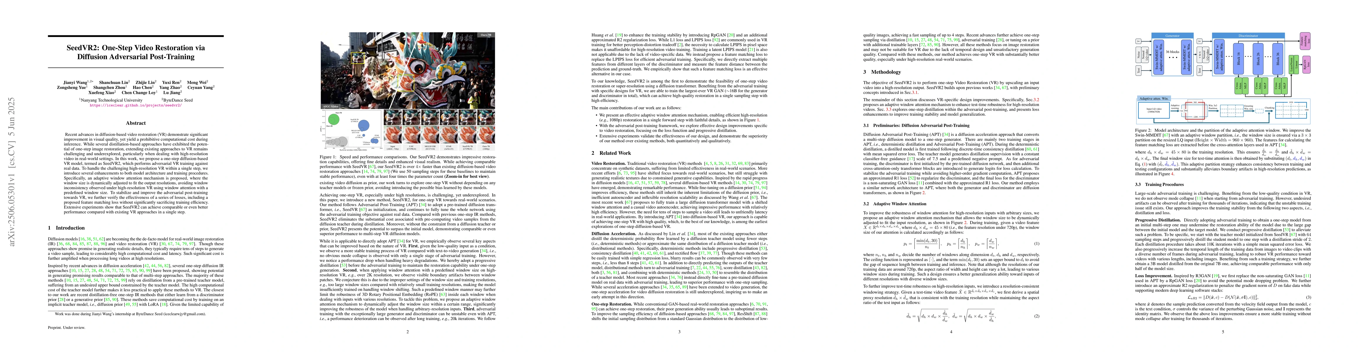 Researchers propose SeedVR2, a one-step video restoration model that uses diffusion adversarial training to achieve comparable performance with existing approaches in a single step.