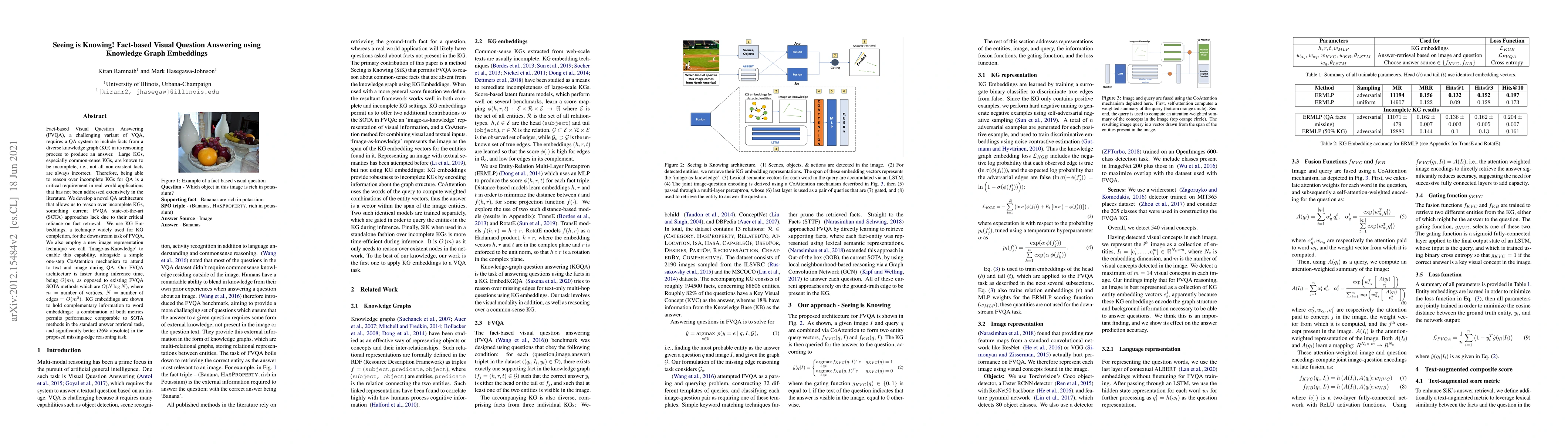 This paper introduces a novel architecture for Fact-based Visual Question Answering (FVQA) that leverages Knowledge Graph (KG) embeddings to reason over incomplete knowledge graphs. The proposed 'Image-as-Knowledge' technique and a CoAttention mechanism enhance the system's ability to infer missing facts, resulting in faster inference and superior performance in reasoning tasks compared to existing methods.