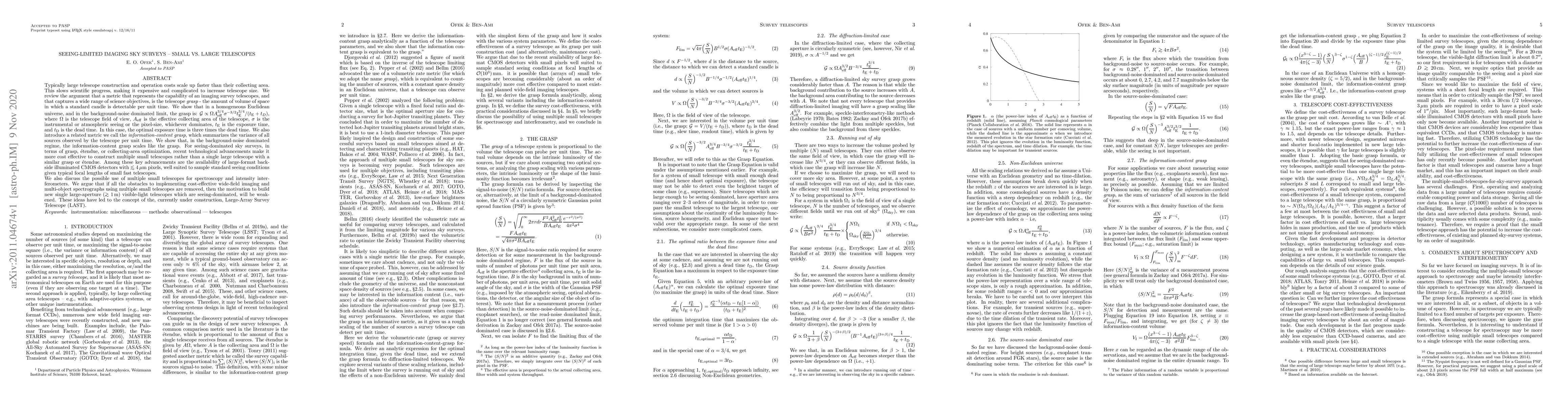 (Abridged) Typically large telescope construction and operation costs scale up faster than their collecting area. This slows scientific progress, making it expensive and complicated to increase telescope size. A metric that represents the capability of an imaging survey telescopes, and that captures a wide range of science objectives, is the telescope grasp -- the amount of volume of space in which a standard candle is detectable per unit time. We provide an analytic expression for the grasp, and also show that in the background-dominated noise limit, the optimal exposure time is three times the dead time. We introduce a related metric we call the information-content grasp, which summarizes the variance of all sources observed by the telescope per unit time. For seeing-dominated sky surveys, in terms of grasp, etendue, or collecting-area optimization, recent technological advancements make it more cost effective to construct multiple small telescopes rather than a single large telescope with a similar grasp or etendue. Among these key advancements are the availability of large-format back-side illuminated CMOS detectors with <4 micron pixels, well suited to sample standard seeing conditions given typical focal lengths of small fast telescopes. We also discuss the possible use of multiple small telescopes for spectroscopy. We argue that if all the obstacles to implementing cost-effective wide-field imaging and multi-object spectrographs using multiple small telescopes are removed, then the motivation to build new single large-aperture (>1m) visible-light telescopes which are seeing-dominated, will be weakened. These ideas have led to the concept of the, currently under construction, Large-Array Survey Telescope (LAST).