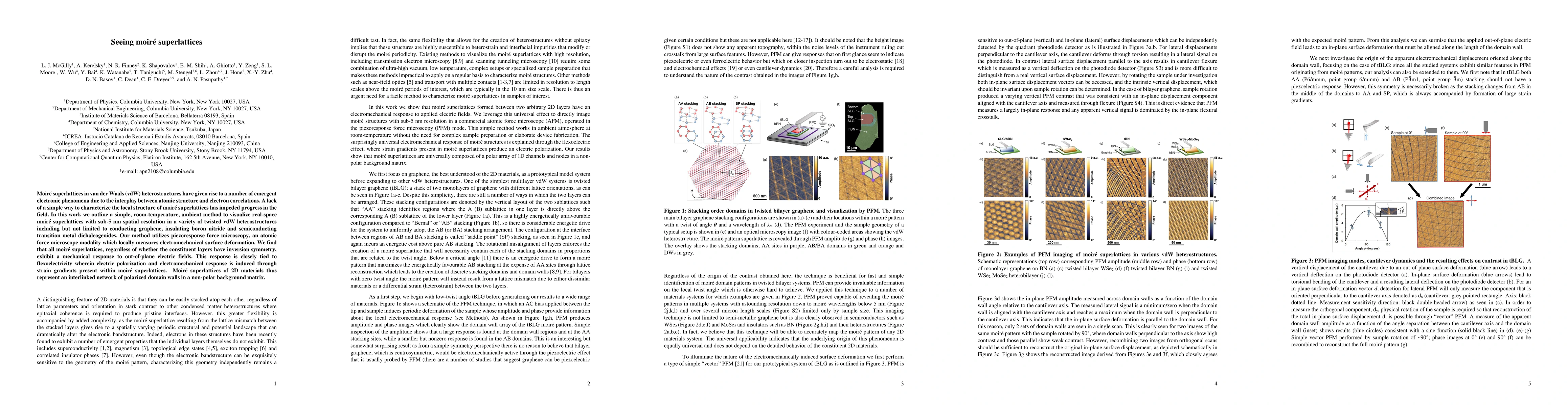 This paper presents a piezoresponse force microscopy technique for visualizing moiré superlattices in van der Waals heterostructures with sub-5 nm resolution, demonstrating flexoelectric effects in diverse materials, including graphene and transition metal dichalcoogenides. The method reveals that moiré superlattices function as networks of polarized domain walls.