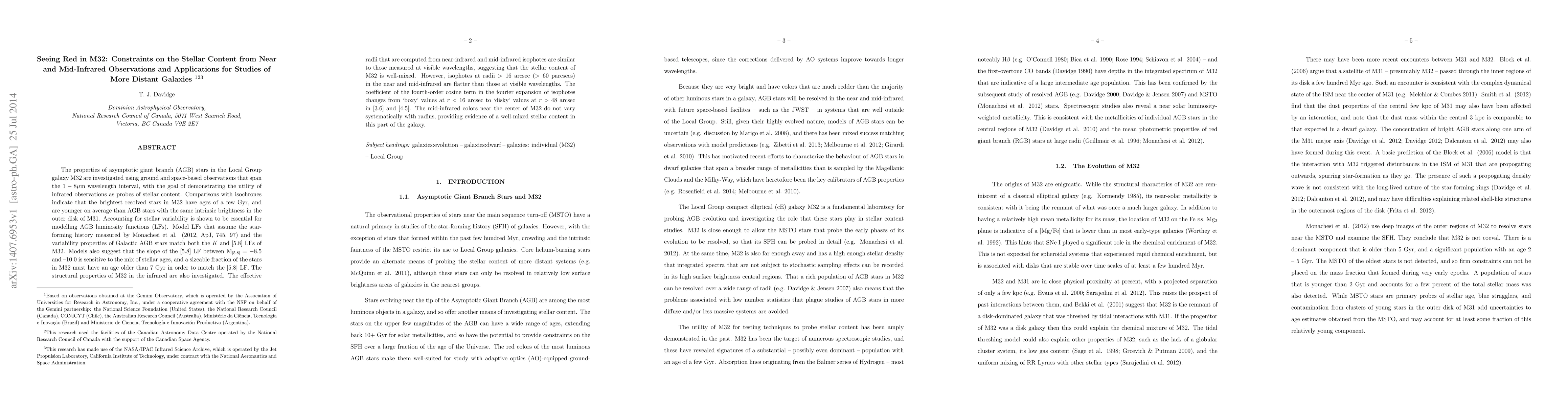 The research examines M32, a nearby galaxy, using infrared observations to understand its stellar content. Key findings include younger AGB stars than those in M31's outer disk, the necessity of accounting for stellar variability in modeling AGB luminosity functions, and evidence of an older stellar population mix in M32. The study also reveals a well-mixed stellar content in M32's central region, with distinct isophote shapes at larger radii in the near and mid-infrared.
