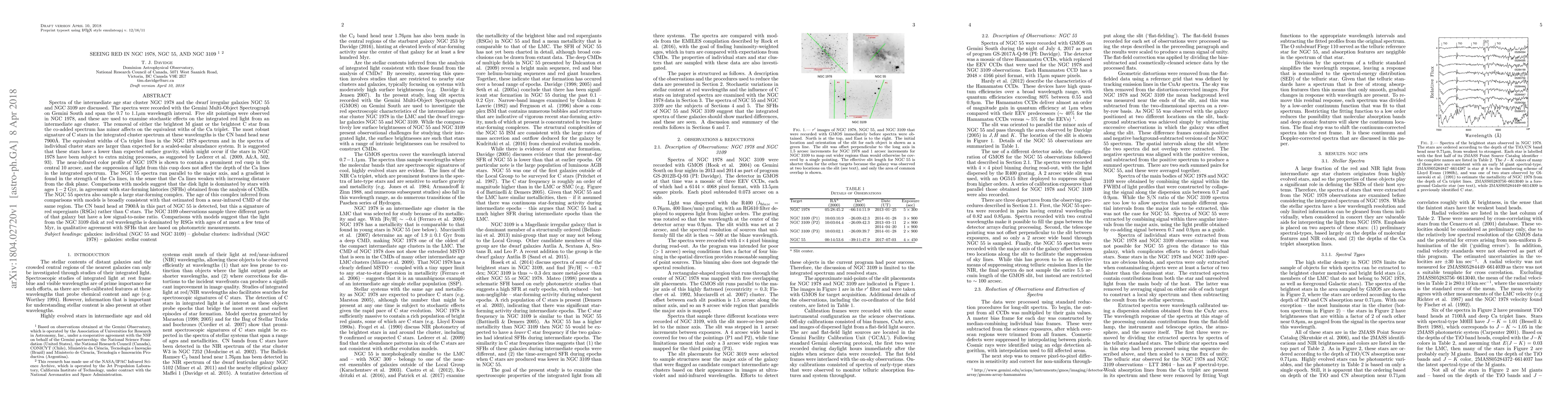 Spectra of the intermediate age star cluster NGC 1978 and the dwarf irregular galaxies NGC 55 and NGC 3109 that span the 0.7 to 1.1um wavelength interval are discussed. The NGC 1978 spectra are used to examine stochastic effects on the integrated red light from an intermediate age cluster. The removal of either the brightest M giant or the brightest C star from the co-added NGC 1978 spectrum has minor effects on the equivalent withs of the Ca triplet. The most robust signature of C stars in the integrated cluster spectrum at these wavelengths is the CN band head near 0.79um. The equivalent widths of Ca triplet lines in the NGC 1978 spectrum and in the spectra of individual cluster stars are larger than expected for a scaled-solar abundance system, and it is suggested that these stars have been subject to extra mixing processes. Ca lines weaken with increasing distance from the disk plane in the NGC 55 spectra. Comparisons with models suggest that the red light from NGC 55 is dominated by stars with ages 1 - 2 Gyr, in agreement with star-forming histories (SFHs) obtained from the analysis of CMDs. The NGC 3109 observations sample three different parts of that galaxy but have a low signal-to-noise ratio. Comparisons with models suggest that the light from the NGC 3109 disk at red wavelengths is dominated by RSGs with ages of at most a few tens of Myr, in qualitative agreement with SFHs that are based on photometric measurements.