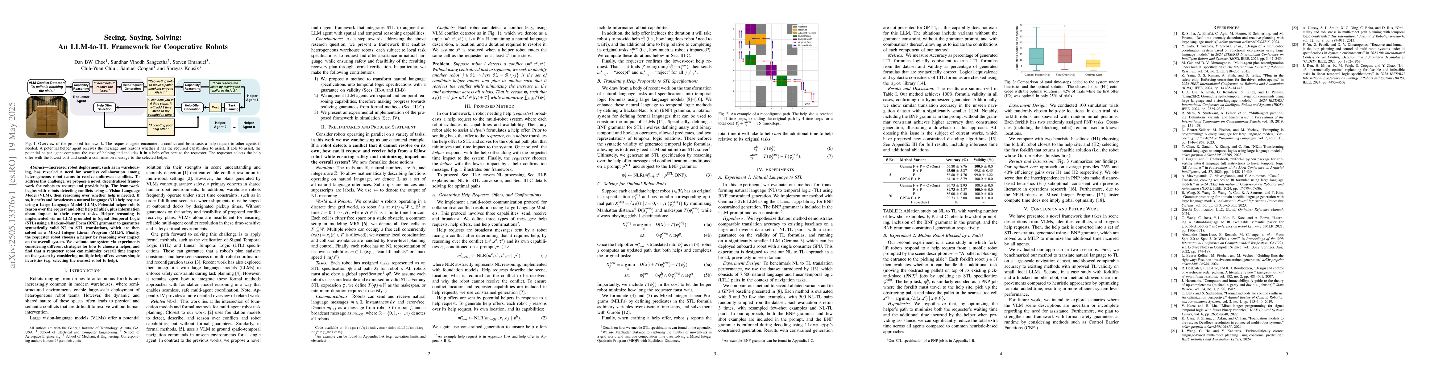 The paper introduces a novel LLM-to-TL framework for cooperative robots, integrating VLM, LLM, STL, and MILP for decentralized conflict resolution and help request management.