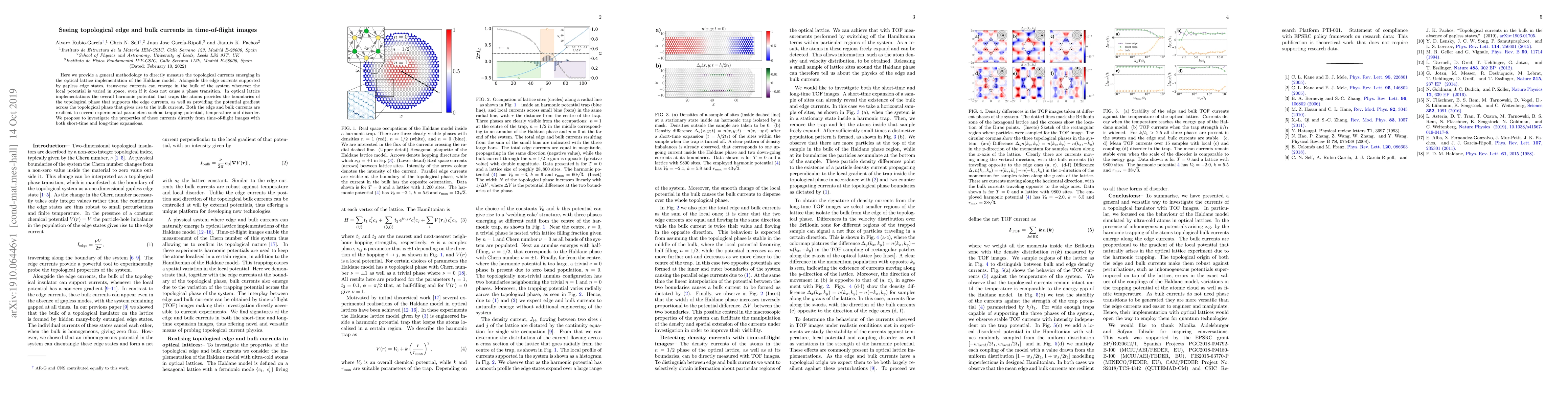 Here we provide a general methodology to directly measure the topological currents emerging in the optical lattice implementation of the Haldane model. Alongside the edge currents supported by gapless edge states, transverse currents can emerge in the bulk of the system whenever the local potential is varied in space, even if it does not cause a phase transition. In optical lattice implementations the overall harmonic potential that traps the atoms provides the boundaries of the topological phase that supports the edge currents, as well as providing the potential gradient across the topological phase that gives rise to the bulk current. Both the edge and bulk currents are resilient to several experimental parameters such as trapping potential, temperature and disorder. We propose to investigate the properties of these currents directly from time-of-flight images with both short-time and long-time expansions.