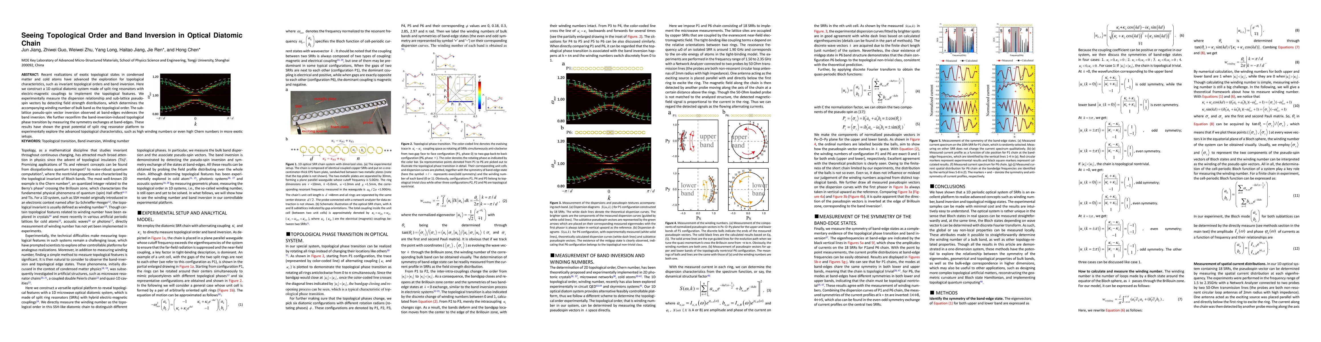 This paper constructs a 1D optical diatomic system using split ring resonators to demonstrate topological order and band inversion. Experimental measurements reveal the topological features and band-edge inversion, confirming the potential of this platform for exploring advanced topological phenomena.