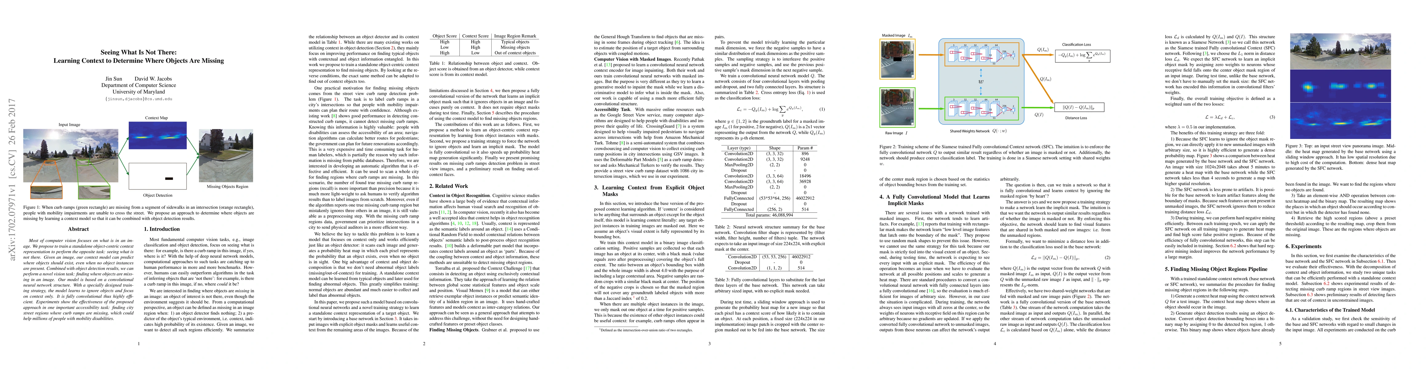 This paper proposes a convolutional neural network model to identify missing objects in an image by focusing on context rather than object instances. The model successfully predicts locations where objects should be, aiding in tasks like detecting missing curb ramps in city streets to assist accessibility for people with mobility disabilities.