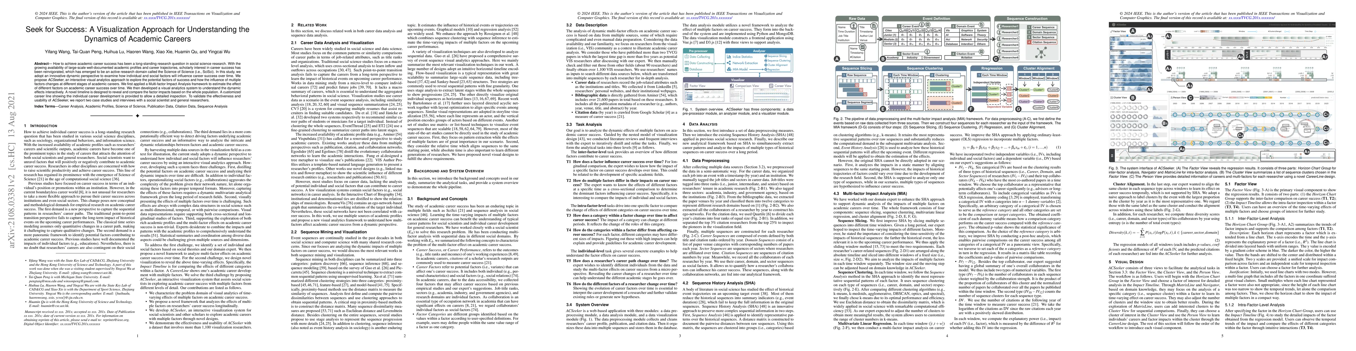 This paper introduces ACSeeker, a visual analytics tool for exploring the dynamic factors influencing academic career success over time. The study employs a Multi-factor Impact Analysis framework and interactive visualizations to reveal how individual and social factors affect career trajectories, validated through case studies and interviews.