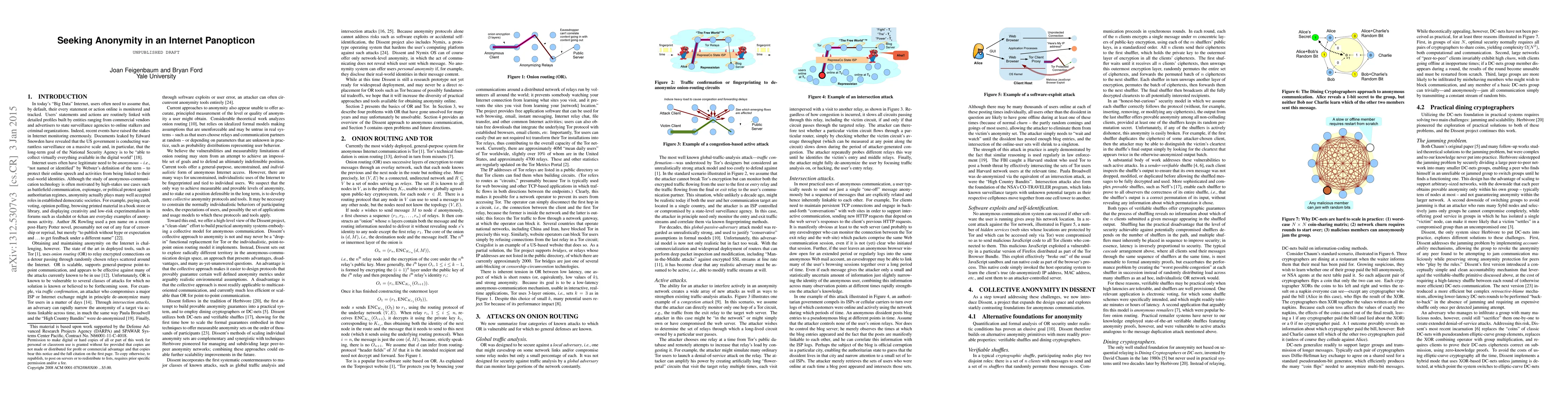 This paper introduces the Dissent project, a novel anonymity system designed to provide measurable and provable anonymity guarantees, addressing major vulnerabilities in existing tools like Tor. It also presents WiNon, an experimental OS architecture to enhance the security of anonymity tools against software exploits and accidental self-identification.