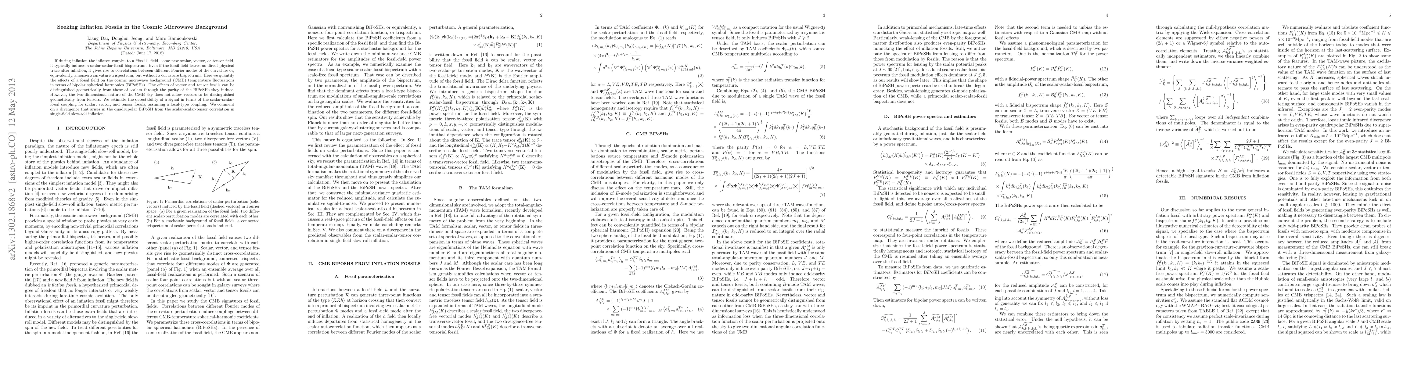 This paper investigates the potential imprints of "fossil" fields from inflation on the cosmic microwave background (CMB) through a scalar-scalar-fossil bispectrum, focusing on the detectability of these effects using bipolar spherical harmonics (BiPoSHs). It concludes that while scalar, vector, and tensor fossils can be distinguished by their parity, the CMB's two-dimensional nature limits the geometric differentiation of vector and tensor fossils.