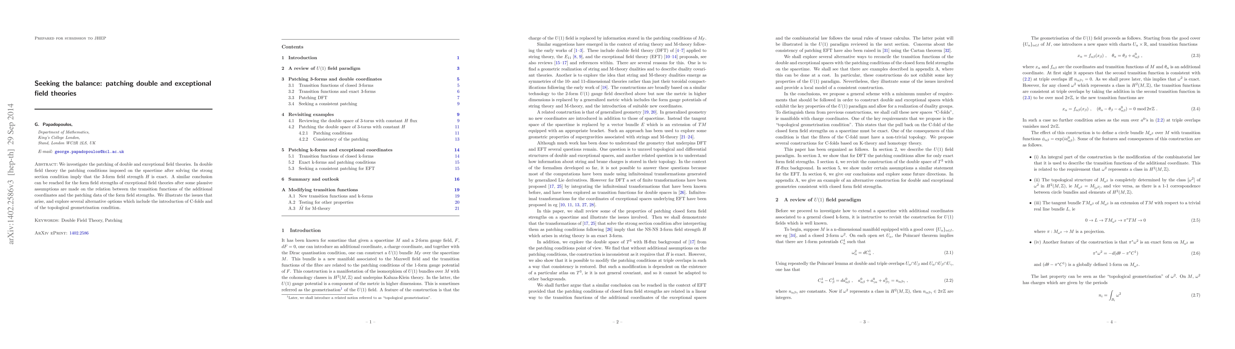 This paper explores the patching conditions in double and exceptional field theories, revealing that imposing such conditions often results in exact form field strengths, such as $H$. It also investigates alternative approaches, including C-folds and topological geometrisation, to address these issues.