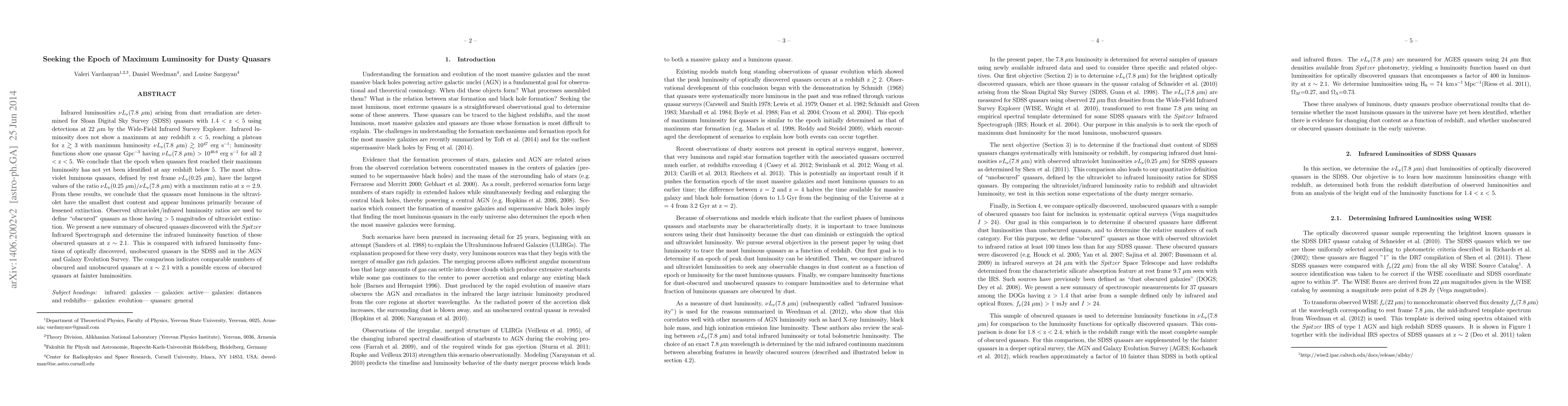 Infrared luminosities vLv(7.8 um) arising from dust reradiation are determined for Sloan Digital Sky Survey (SDSS) quasars with 1.4 < z < 5 using detections at 22 um by the Wide-Field Infrared Survey Explorer. Infrared luminosity does not show a maximum at any redshift z < 5, reaching a plateau for z >~ 3 with maximum luminosity vLv(7.8 um) >~ 10^{47} erg per s; luminosity functions show one quasar per cubic Gpc having vLv(7.8 um) > 10^{46.6} erg per s for all 2 < z < 5. We conclude that the epoch when quasars first reached their maximum luminosity has not yet been identified at any redshift below 5. The most ultraviolet luminous quasars, defined by rest frame vLv(0.25 um), have the largest values of the ratio vLv(0.25 um)/vLv(7.8 um) with a maximum ratio at z = 2.9. From these results, we conclude that the quasars most luminous in the ultraviolet have the smallest dust content and appear luminous primarily because of lessened extinction. Observed ultraviolet/infrared luminosity ratios are used to define "obscured" quasars as those having > 5 magnitudes of ultraviolet extinction. We present a new summary of obscured quasars discovered with the Spitzer Infrared Spectrograph and determine the infrared luminosity function of these obscured quasars at z ~ 2.1. This is compared with infrared luminosity functions of optically discovered, unobscured quasars in the SDSS and in the AGN and Galaxy Evolution Survey. The comparison indicates comparable numbers of obscured and unobscured quasars at z ~ 2.1 with a possible excess of obscured quasars at fainter luminosities.