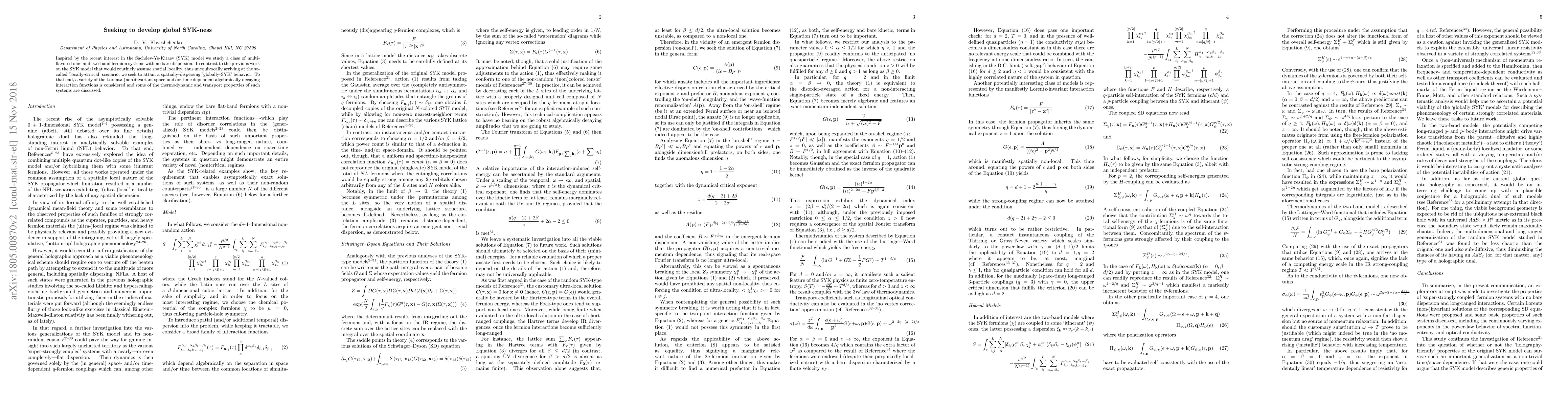 Inspired by the recent interest in the Sachdev-Ye-Kitaev (SYK) model we study a class of multi-flavored one- and two-band fermion systems with no bare dispersion. In contrast to the previous work on the SYK model that would routinely assume spatial locality, thus unequivocally arriving at the so-called 'locally-critical' scenario, we seek to attain a spatially-dispersing 'globally-SYK' behavior. To that end, a variety of the Lorentz-(non)invariant space-and/or-time dependent algebraically decaying interaction functions is considered and some of the thermodynamic and transport properties of such systems are discussed.