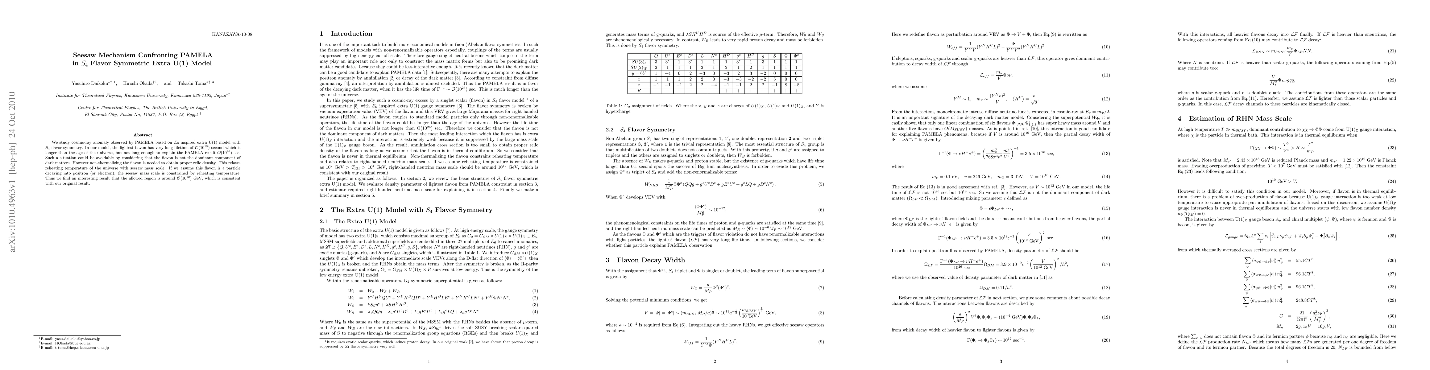 Researchers investigate a cosmic-ray anomaly using an E6-inspired extra U(1) model with S_4 flavor symmetry, finding a constrained seesaw mass scale of around 10^12 GeV.