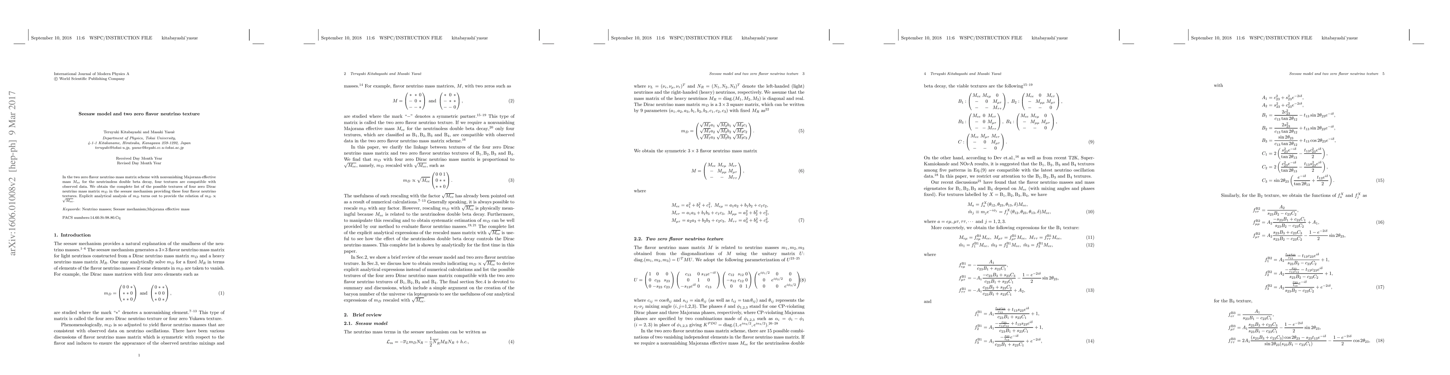 This paper explores the seesaw model with two zero flavor neutrino textures, identifying four compatible Dirac neutrino mass matrices. It finds an analytical relation where the Dirac mass matrix is proportional to the square root of the Majorana effective mass for neutrinoless double beta decay.