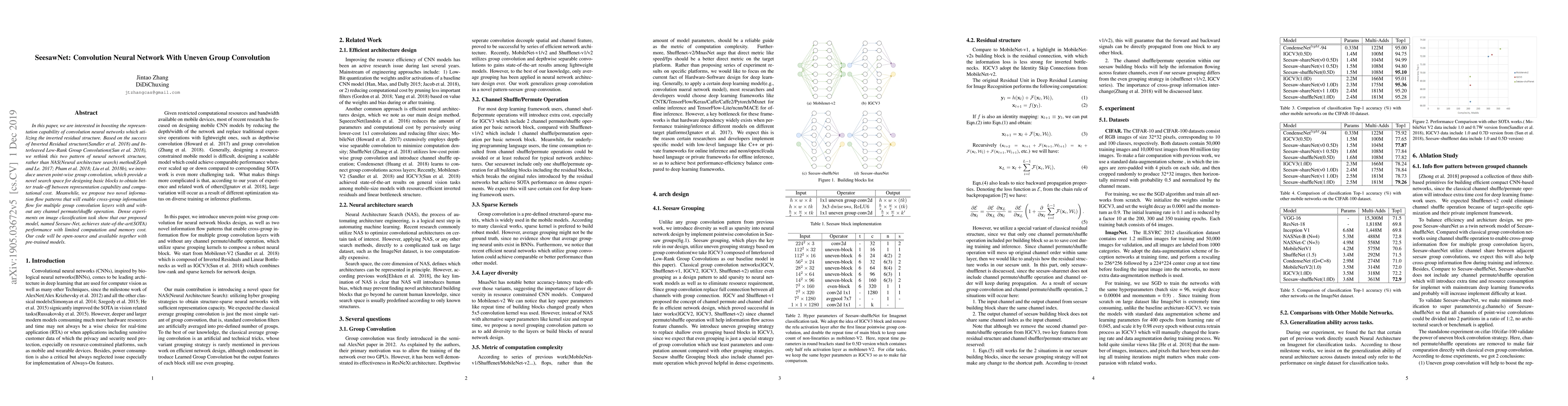 In this paper, we are interested in boosting the representation capability of convolution neural networks which utilizing the inverted residual structure. Based on the success of Inverted Residual structure[Sandler et al. 2018] and Interleaved Low-Rank Group Convolutions[Sun et al. 2018], we rethink this two pattern of neural network structure, rather than NAS(Neural architecture search) method[Zoph and Le 2017; Pham et al. 2018; Liu et al. 2018b], we introduce uneven point-wise group convolution, which provide a novel search space for designing basic blocks to obtain better trade-off between representation capability and computational cost. Meanwhile, we propose two novel information flow patterns that will enable cross-group information flow for multiple group convolution layers with and without any channel permute/shuffle operation. Dense experiments on image classification task show that our proposed model, named Seesaw-Net, achieves state-of-the-art(SOTA) performance with limited computation and memory cost. Our code will be open-source and available together with pre-trained models.