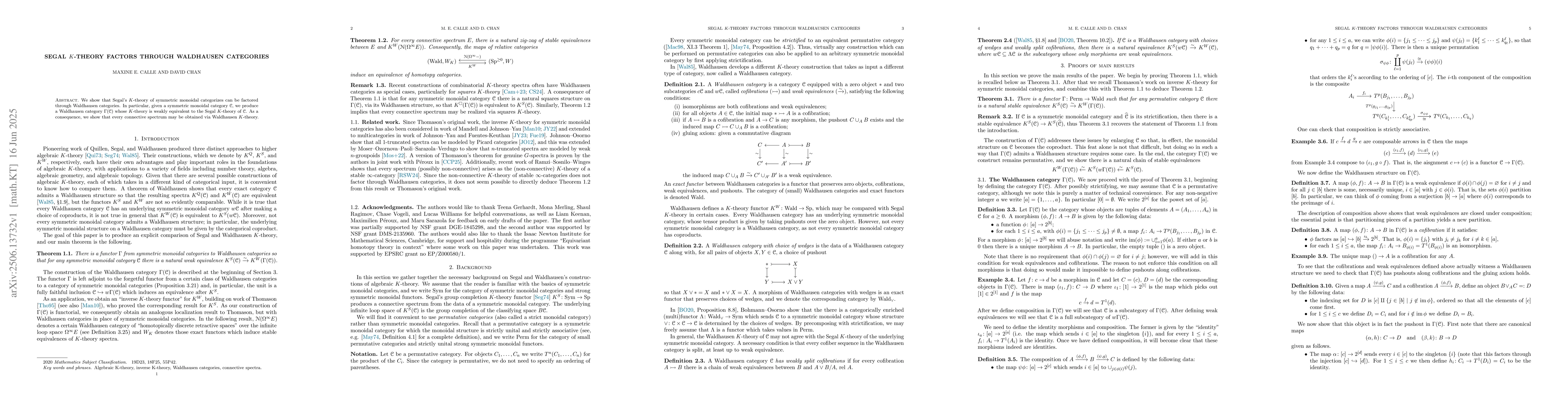 We show that Segal's K-theory of symmetric monoidal categorizes can be factored through Waldhausen categories. In particular, given a symmetric monoidal category $C$, we produce a Waldhausen category $\Gamma(C)$ whose K-theory is weakly equivalent to the Segal K-theory of $C$. As a consequence, we show that every connective spectrum may be obtained via Waldhausen K-theory.