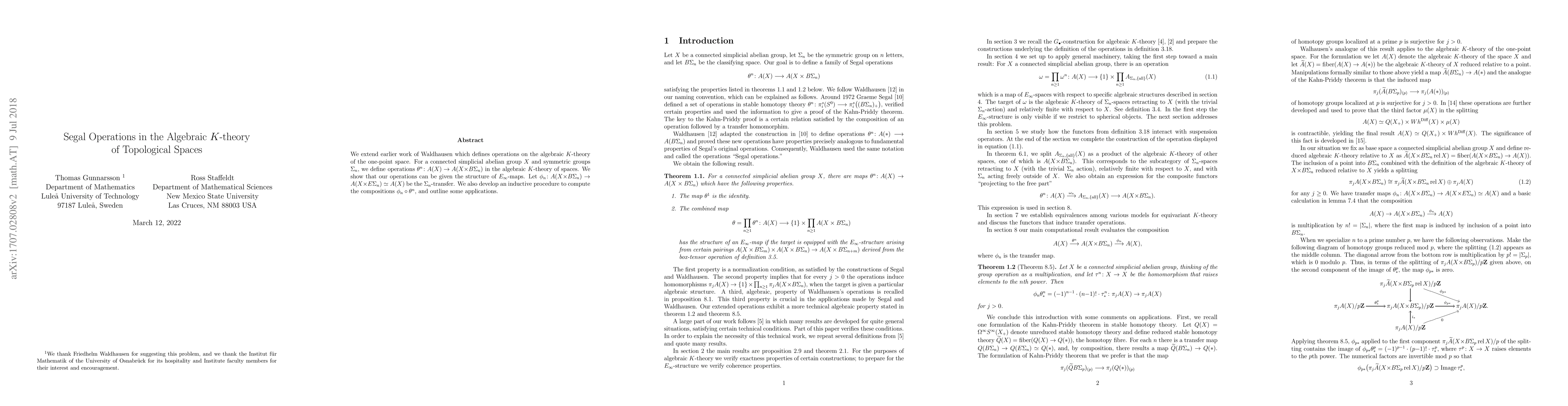 This paper extends Waldhausen's work on algebraic $K$-theory by defining Segal operations $\theta^n$ for connected simplicial abelian groups $X$ and symmetric groups $\Sigma_n$, providing them with $E_{\infty}$-map structure, and developing an inductive procedure to compute their compositions with $\Sigma_n$-transfer maps $\phi_n$.