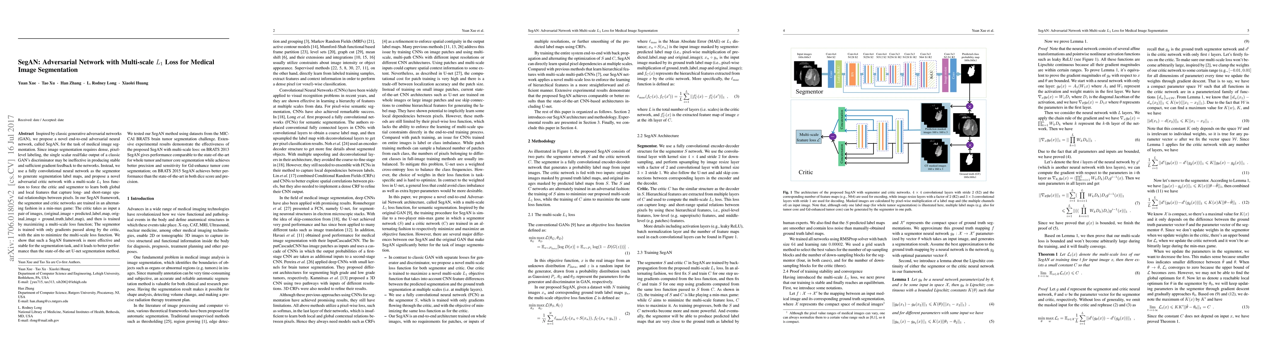 SegAN is an adversarial neural network with a multi-scale $L_1$ loss for medical image segmentation, which uses a critic network to provide both global and local feature feedback, leading to better performance than U-net. Experimental results show SegAN's superior performance on the MICCAI BRATS brain tumor segmentation challenge.